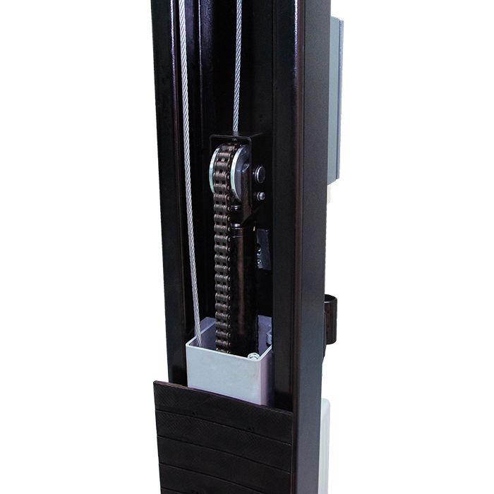 Пульт управления с печатной платой, которая сама управляет подъемником - достаточно лишь нажать кнопку спуска: подъемник сам приподнимет автомобиль со стопоров, отключит их, опустит автомобиль на землю, включит стопора после завершения спуска и при этом сохранит сами кнопки управления безопасными (24 В), в отличие от более бюджетных подъемников, где «на кнопке» - все 380 В питающего напряжения;