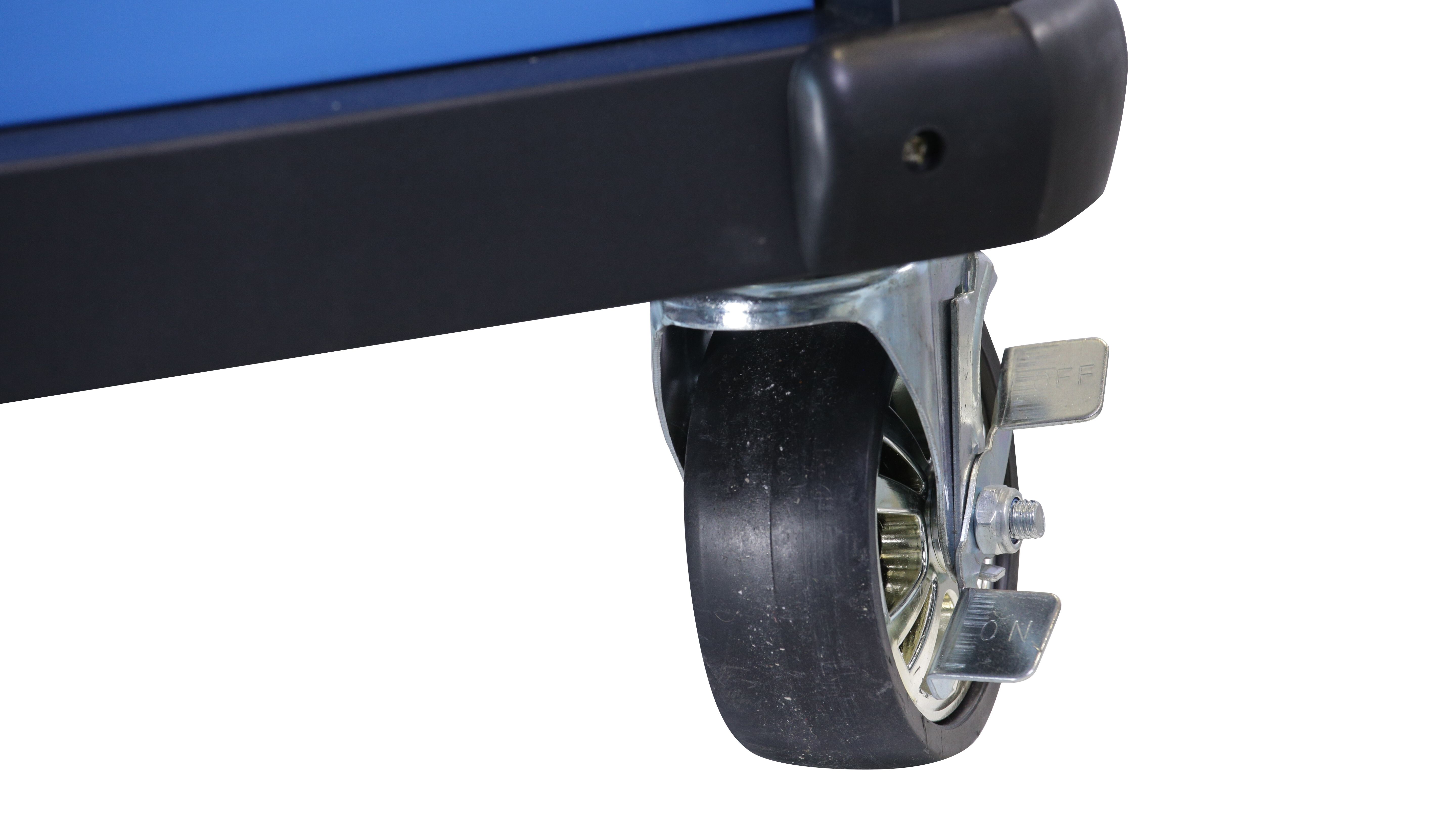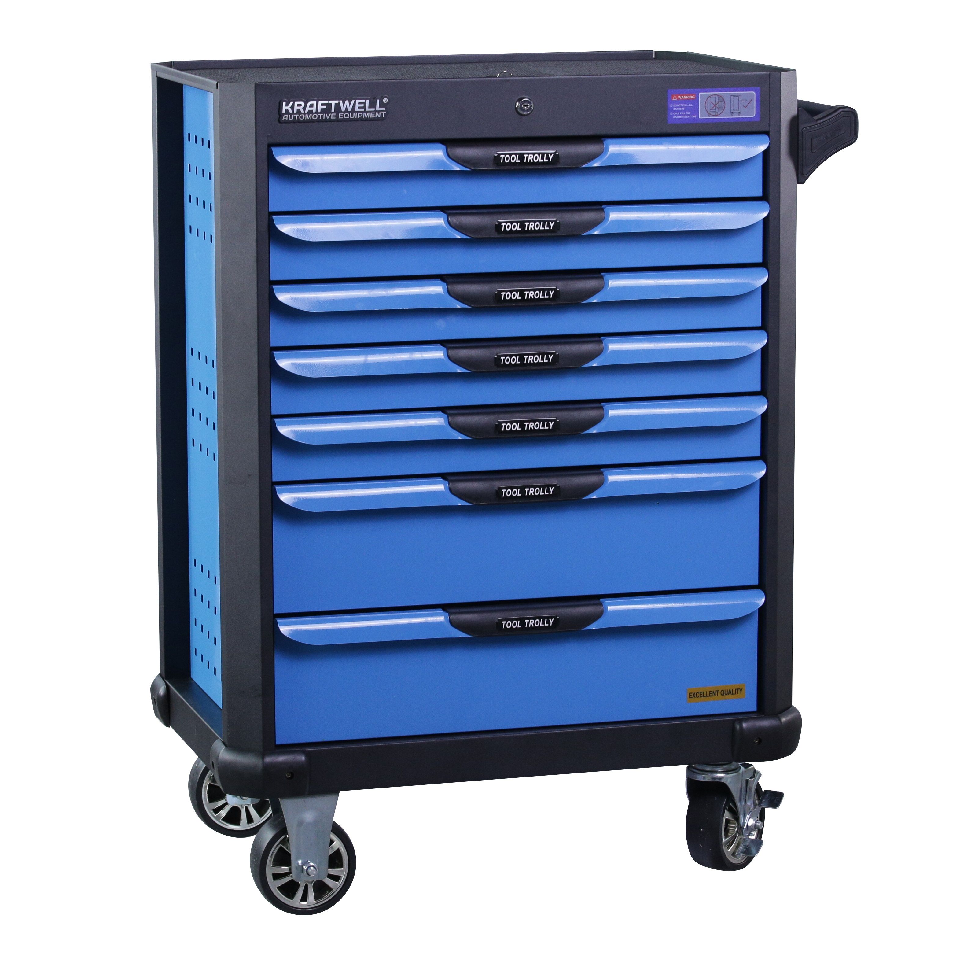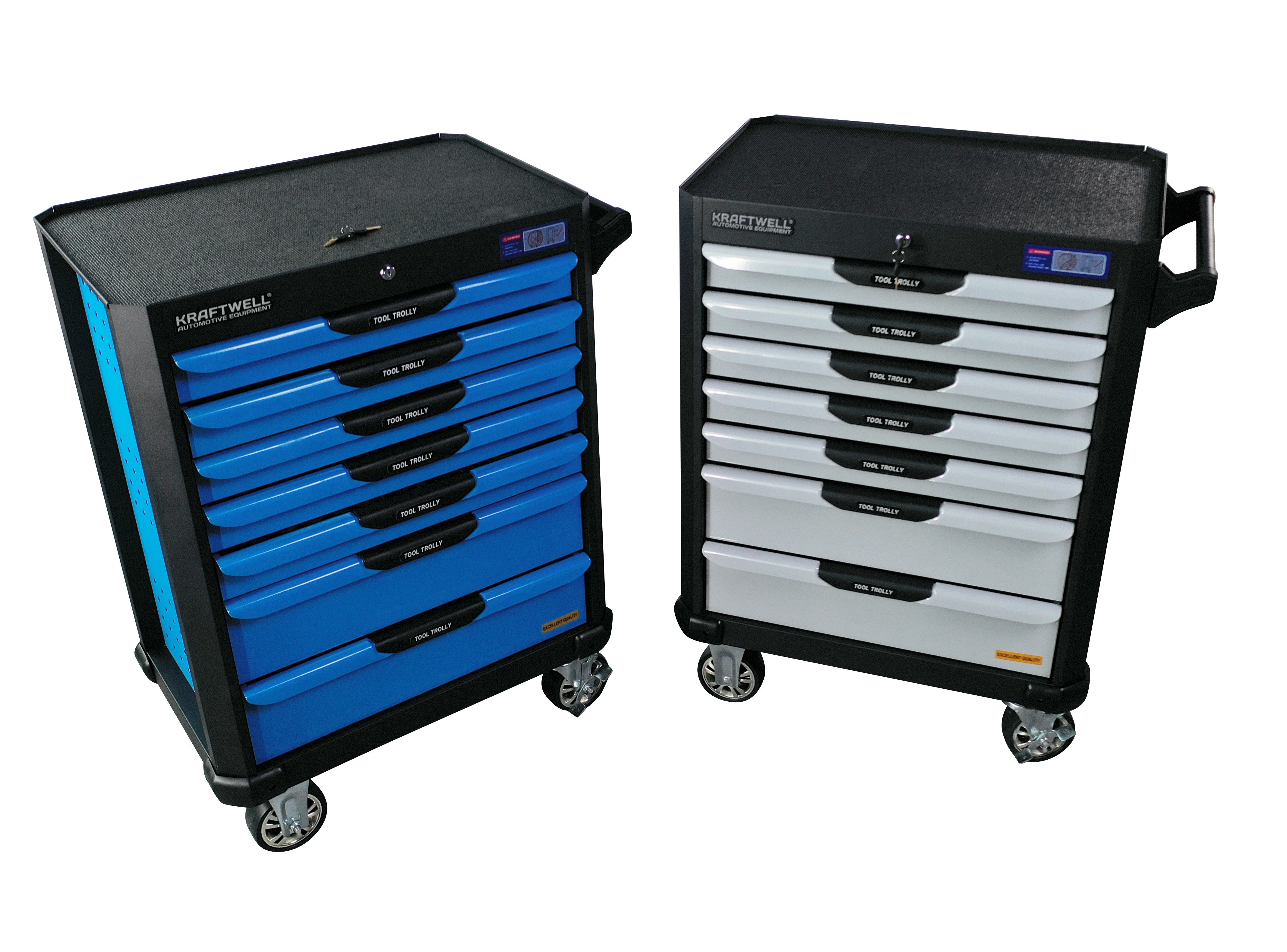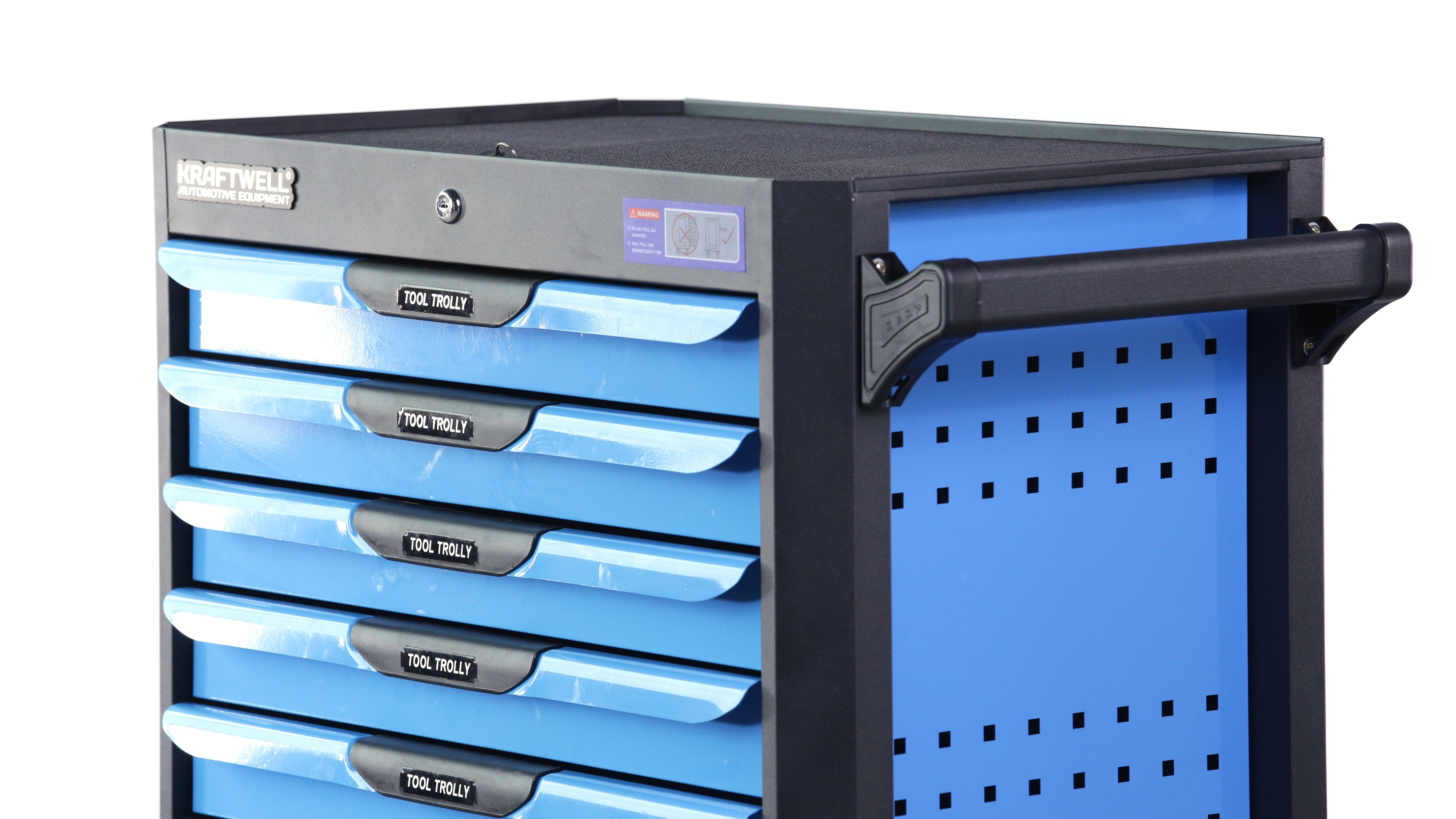 Инструментальная тележка KRW-TTB оснащена 7-ю выдвижными ящиками.В ПОДАРОК 6 ящиков укомплектованы ложементами с инструментом (277 предметов). Тележка предназначена для оборудования рабочих мест в автосервисах, мастерских и других производственных помещениях. Телескопические направляющие ящиков имеют механизм фиксации, не позволяющий самопроизвольно открыться ящику, даже если внутри находится инструмент, а также доводчиком, обеспечивающим плавное закрытие ящика. Корпус тележки изготовлен из высококачественной стали и окрашен порошковой краской. Перфорированные боковины предусматривают установку крючков. Для перемещения тележки предусмотрены обрезиненные стальные колеса Ф100 мм, одно из которых имеет стояночный тормоз.
