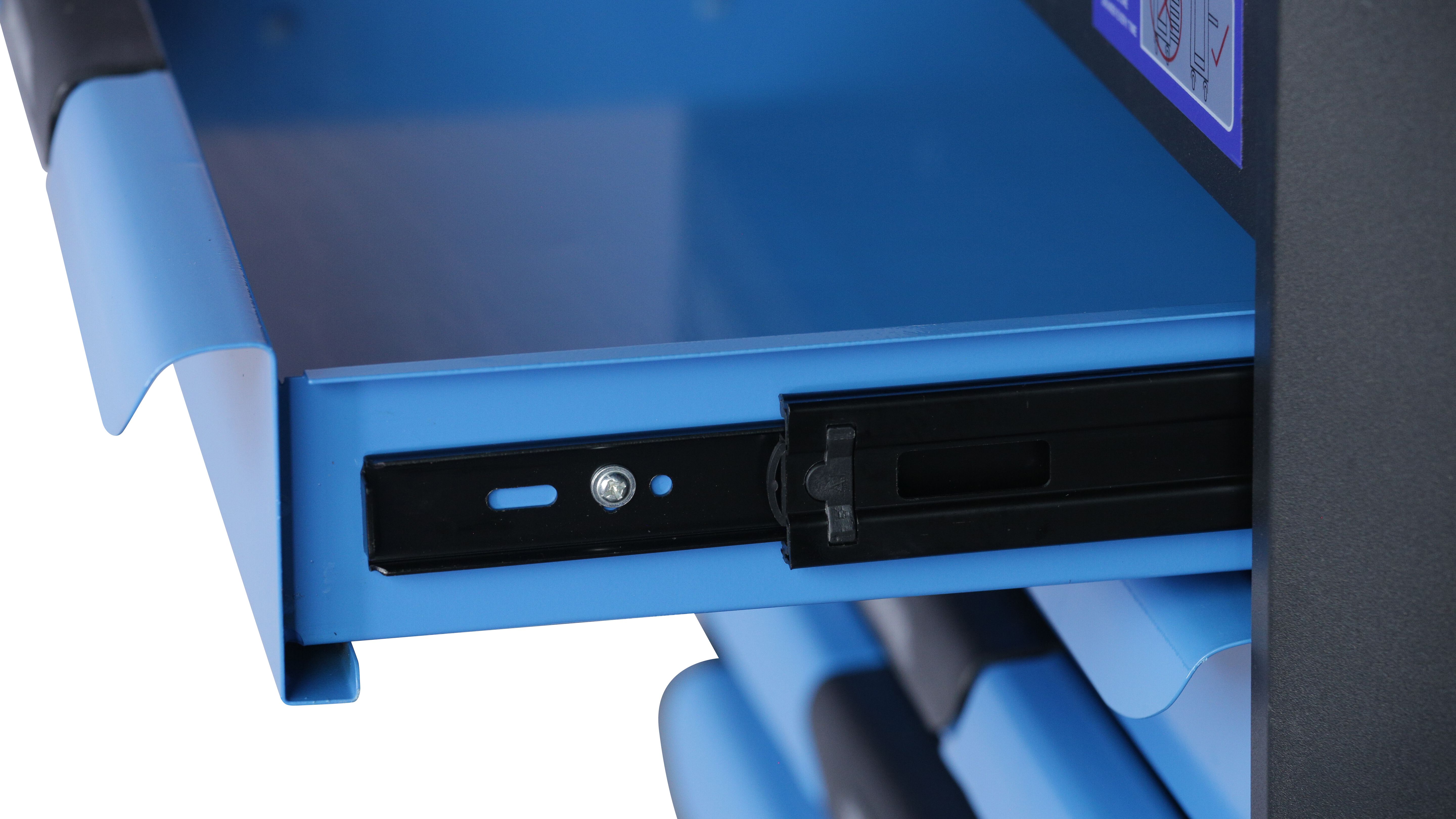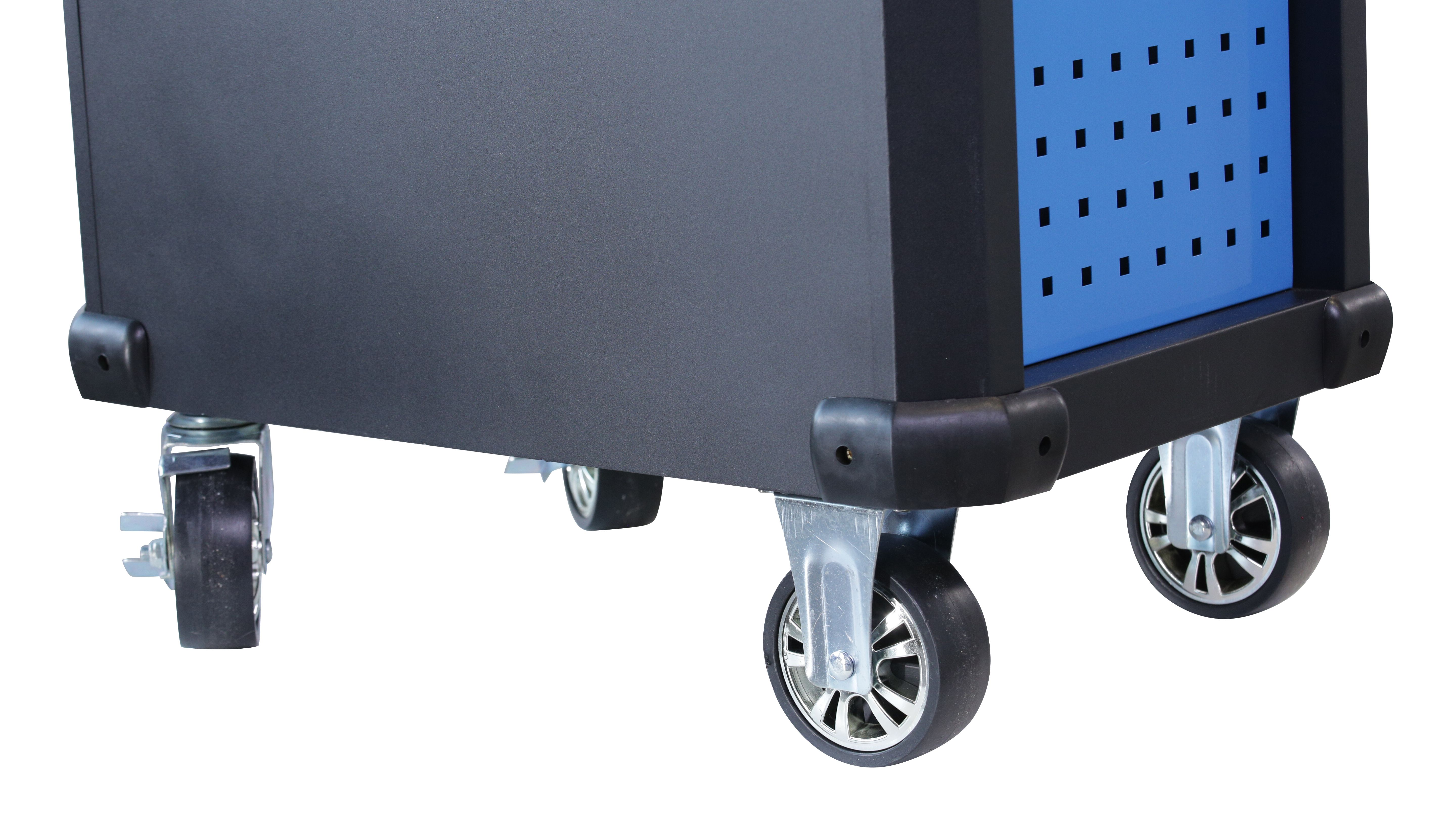 Тележка инструментальная с 7 выдвижными ящиками.Цвет синий. Ящики на телескопических направляющих с фиксацией и доводчиком. В ПОДАРОК - комплект инструмента 277 предметов на 6 ложементах.