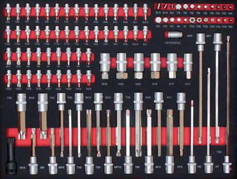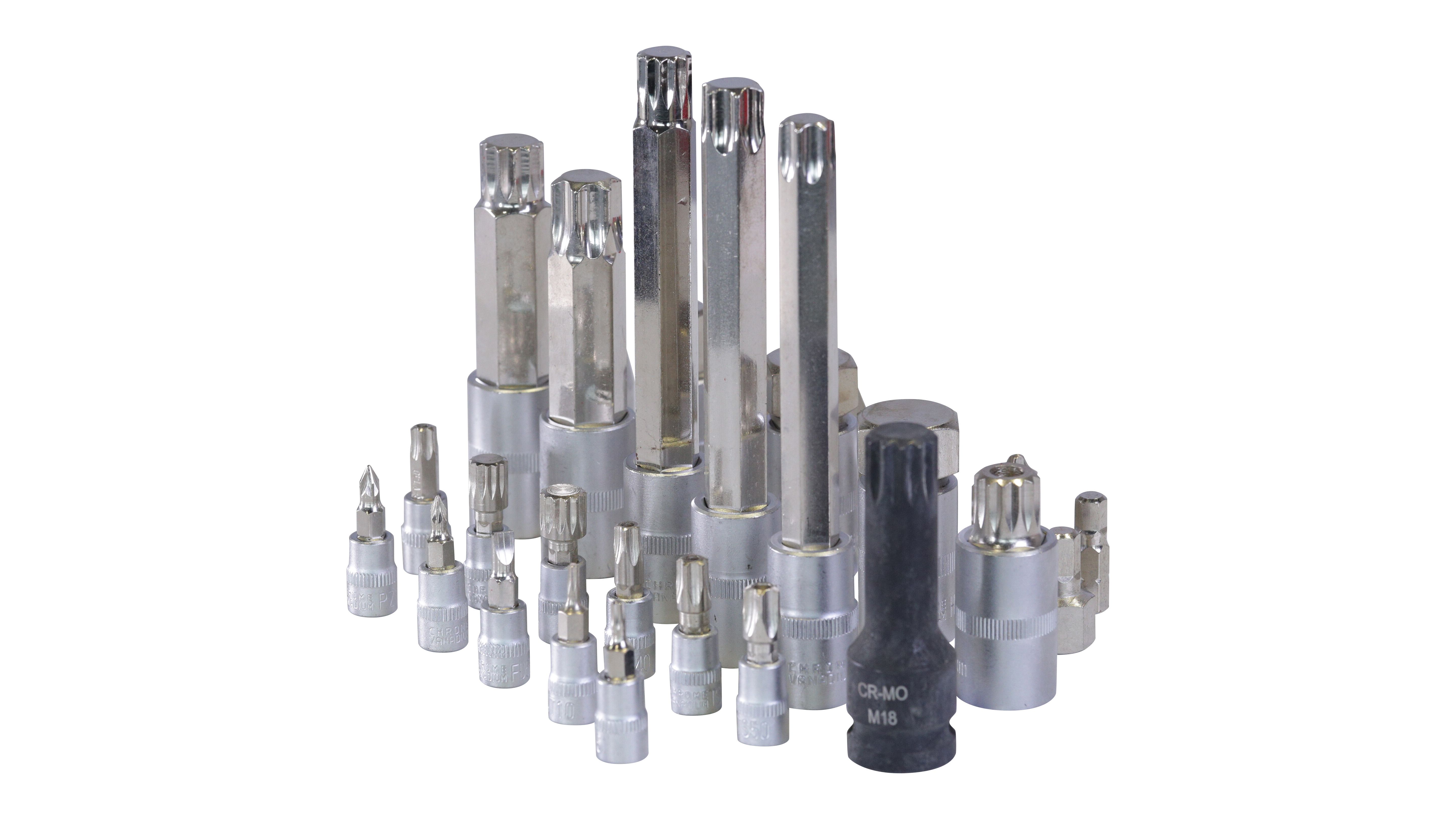 Головки-биты 1/2": MP7, MP8, MP9, MP10, M9, M10, M12, M14, M16, M16, T30, TT40, T45, T50, T55, T60, T70, T80, H5, H7, H10, H11, H13, H14, 17, H19, H22, 24
