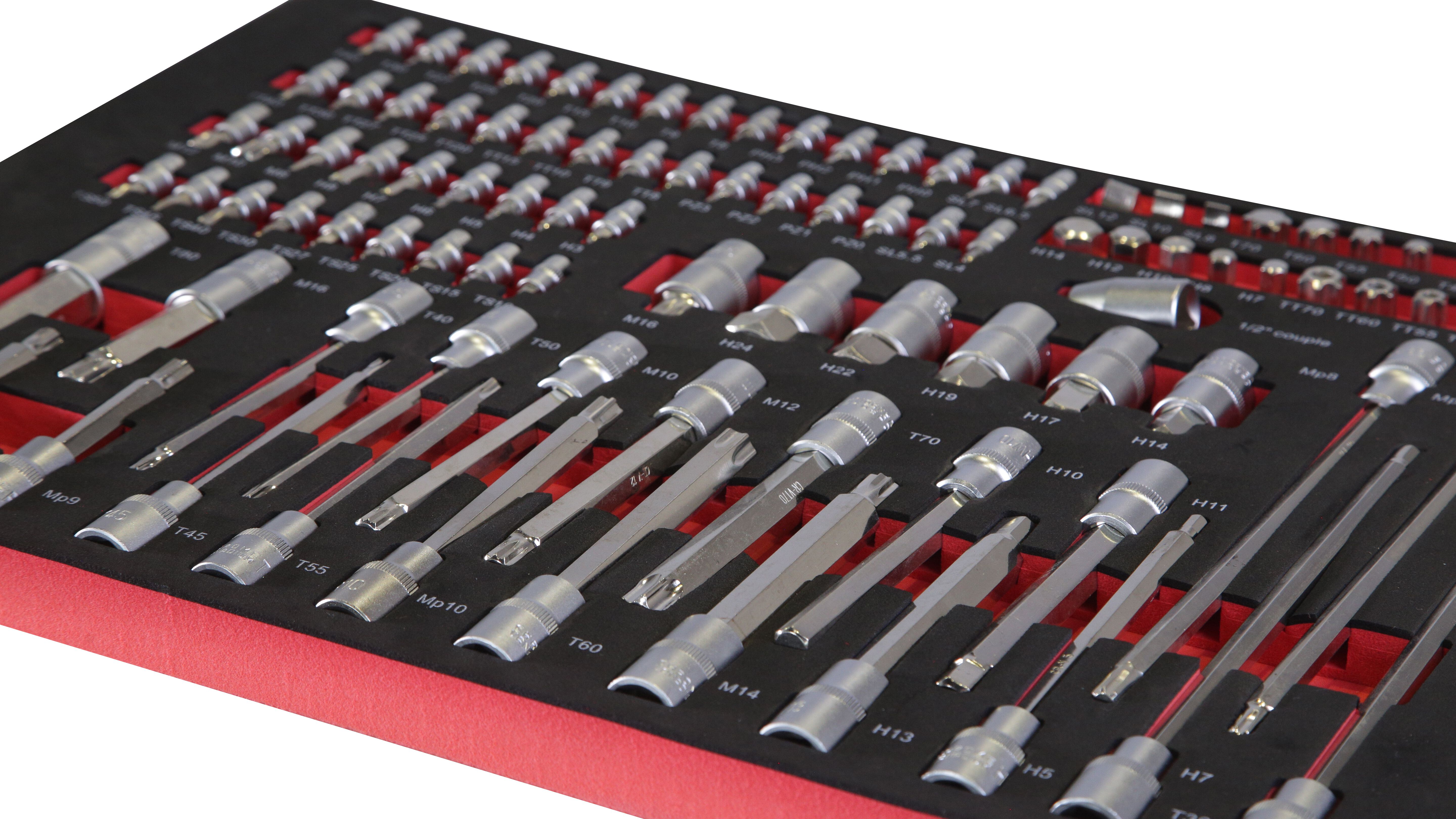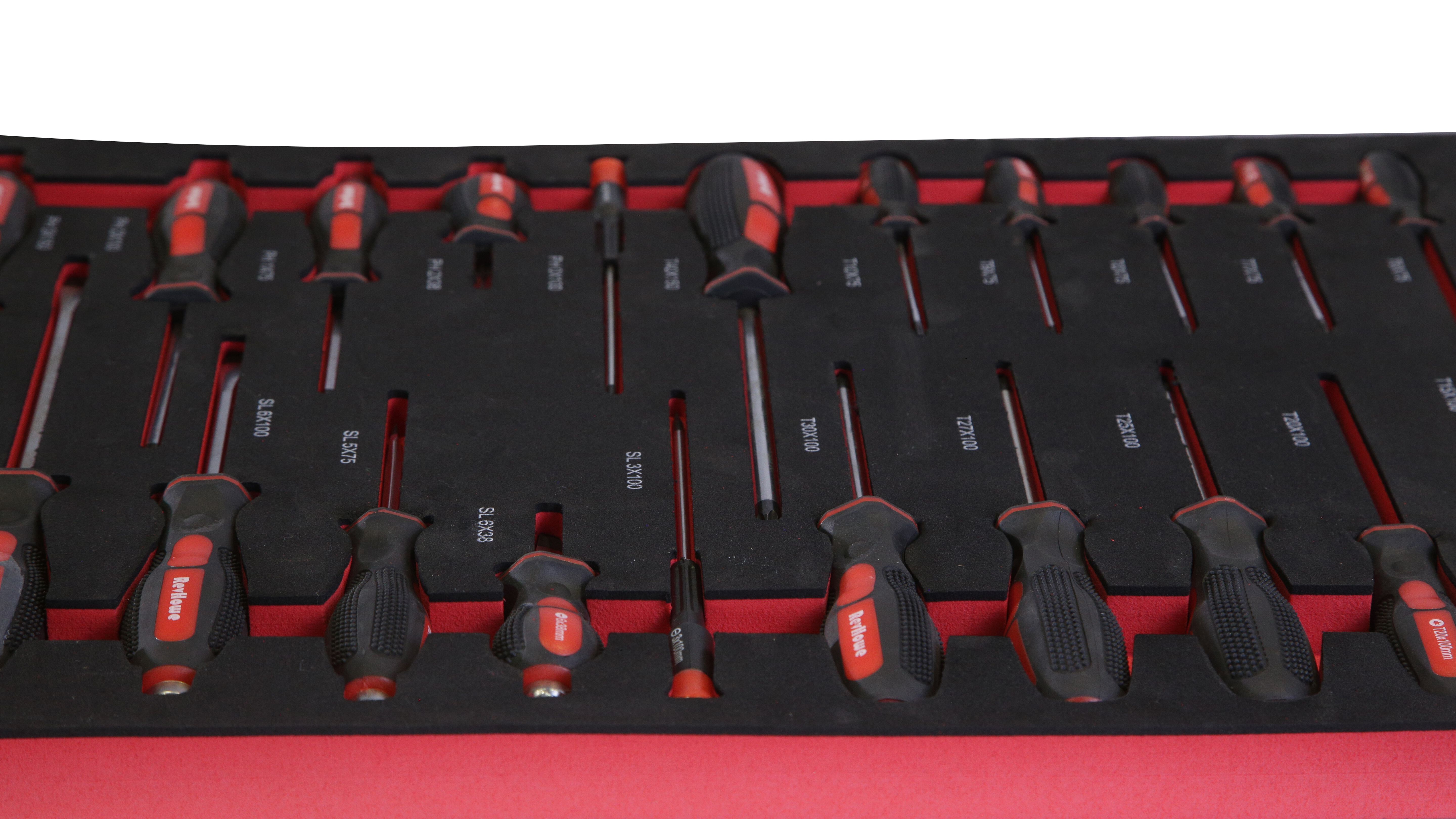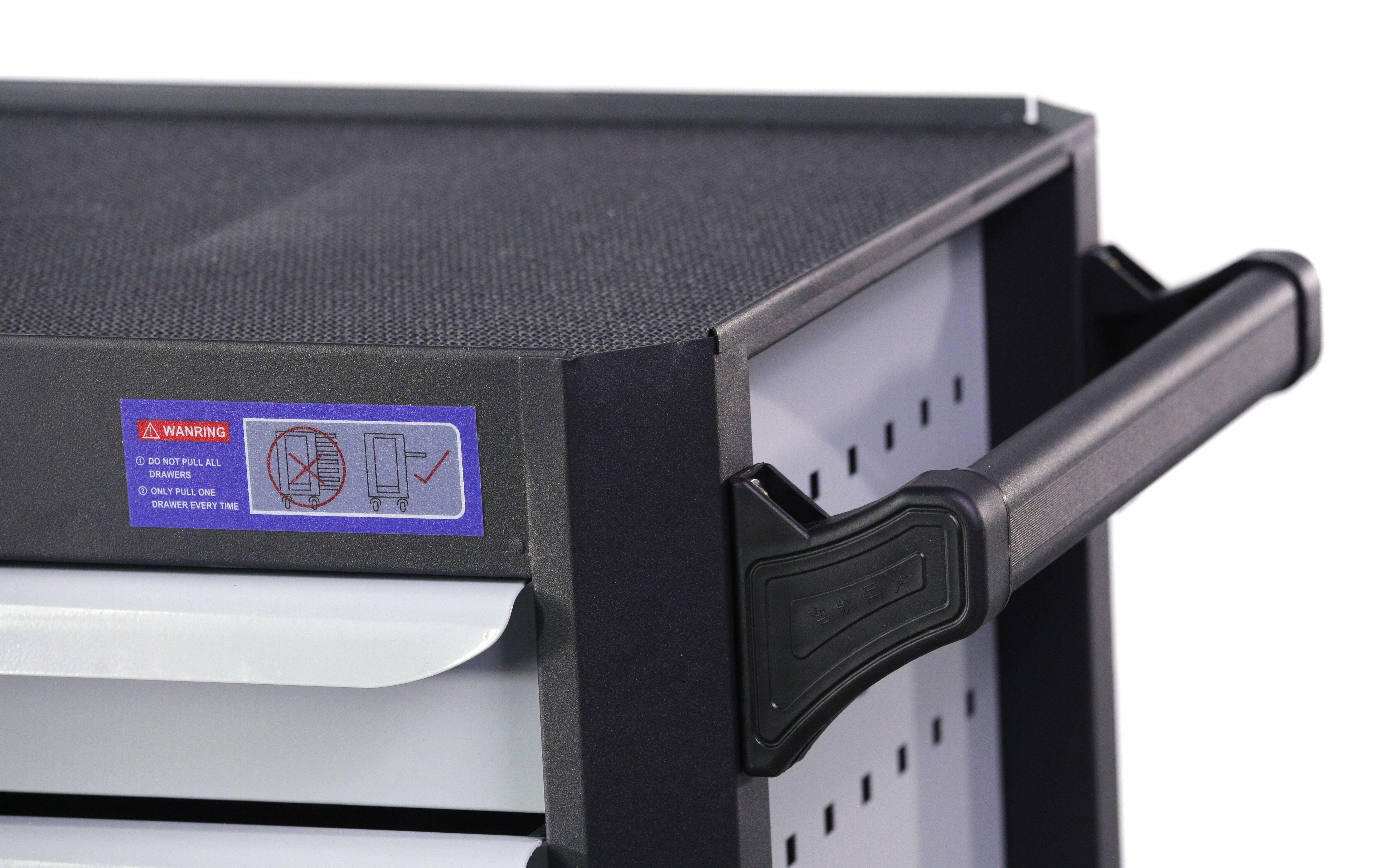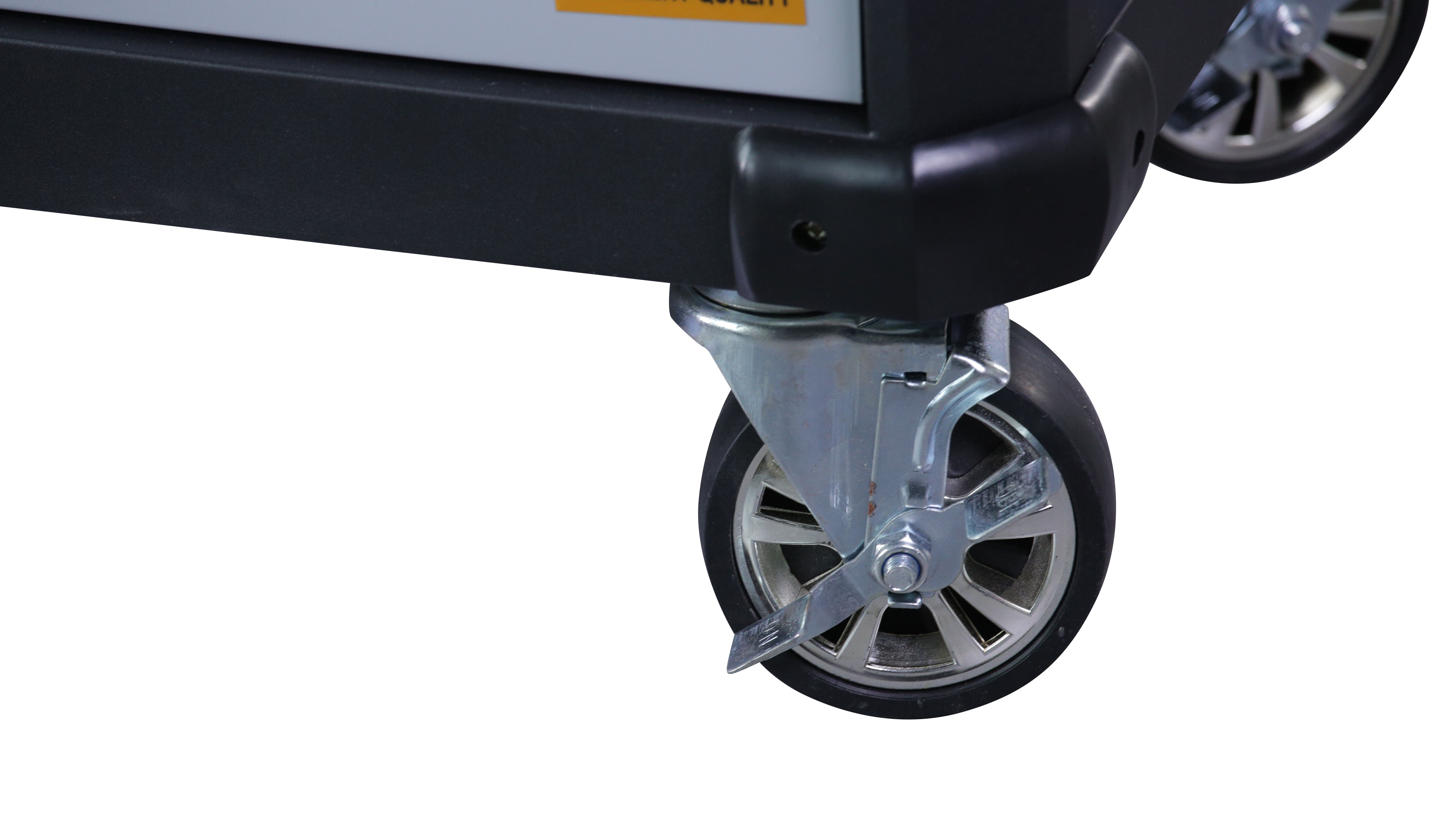 Инструментальная тележка KRW-TTG оснащена 7-ю выдвижными ящиками.В ПОДАРОК 6 ящиков укомплектованы ложементами с инструментом (277 предметов). Тележка предназначена для оборудования рабочих мест в автосервисах, мастерских и других производственных помещениях. Телескопические направляющие ящиков имеют механизм фиксации, не позволяющий самопроизвольно открыться ящику, даже если внутри находится инструмент, а также доводчиком, обеспечивающим плавное закрытие ящика. Корпус тележки изготовлен из высококачественной стали и окрашен порошковой краской. Перфорированные боковины предусматривают установку крючков. Для перемещения тележки предусмотрены обрезиненные стальные колеса Ф100 мм, одно из которых имеет стояночный тормоз.
