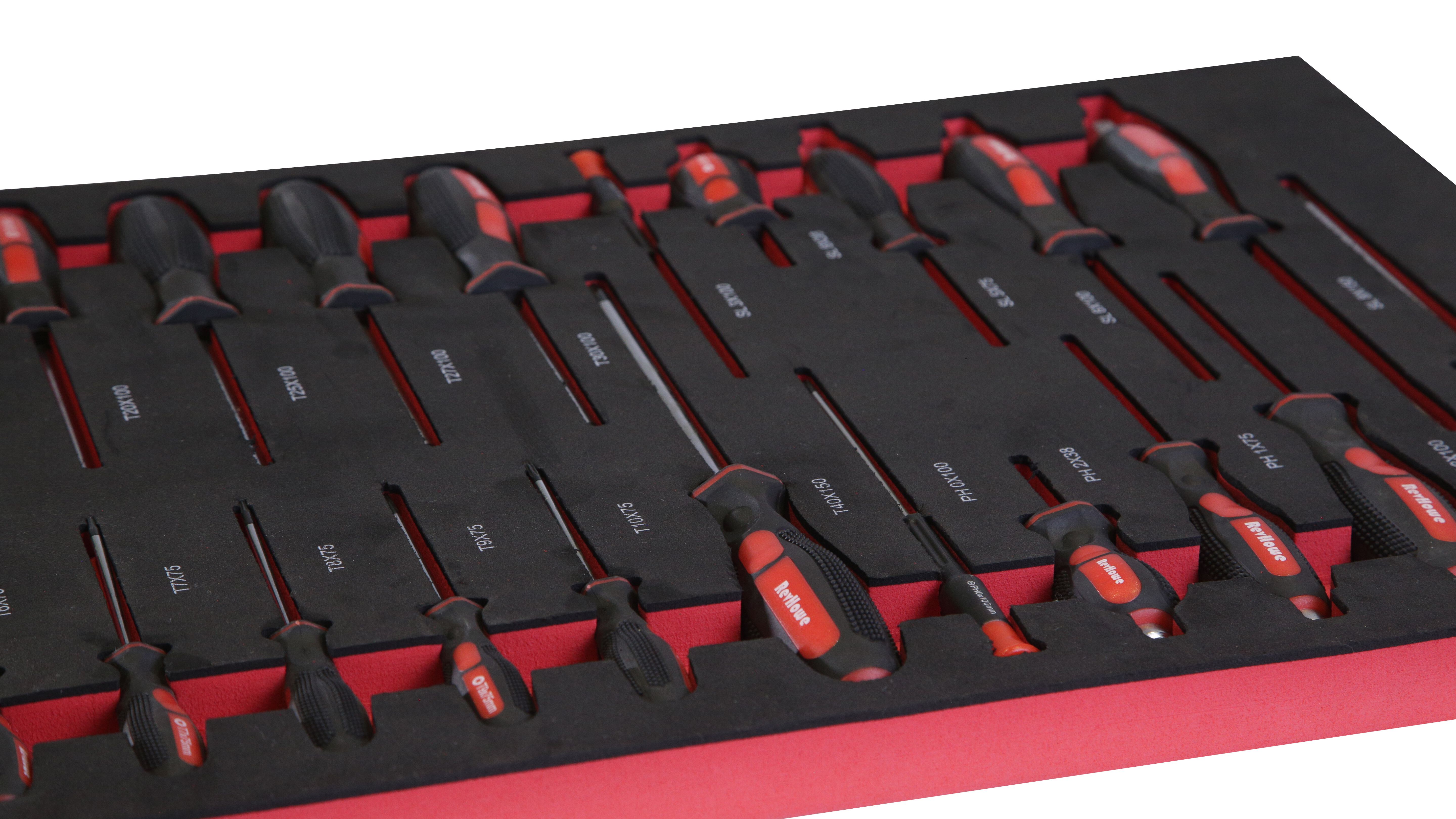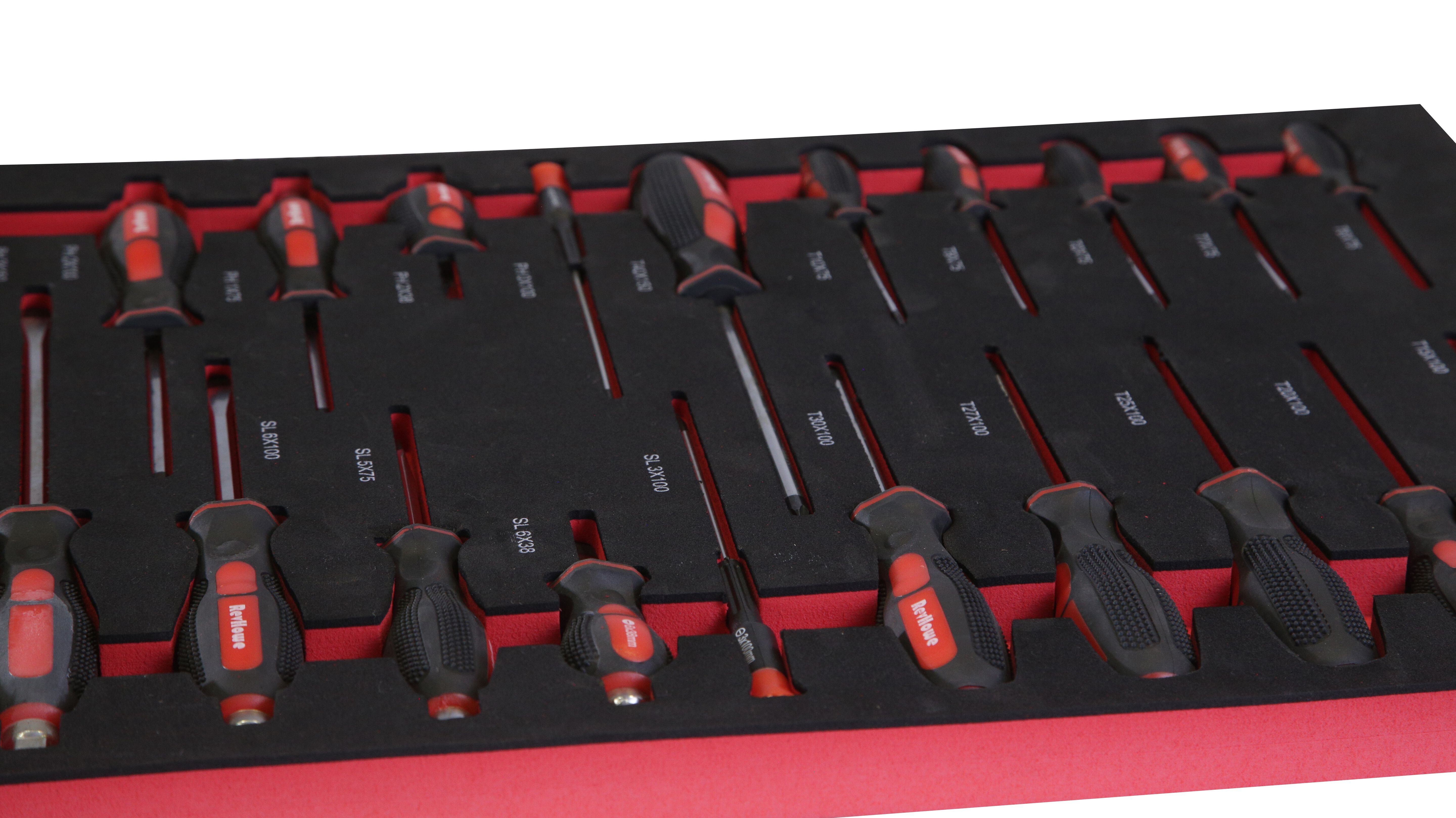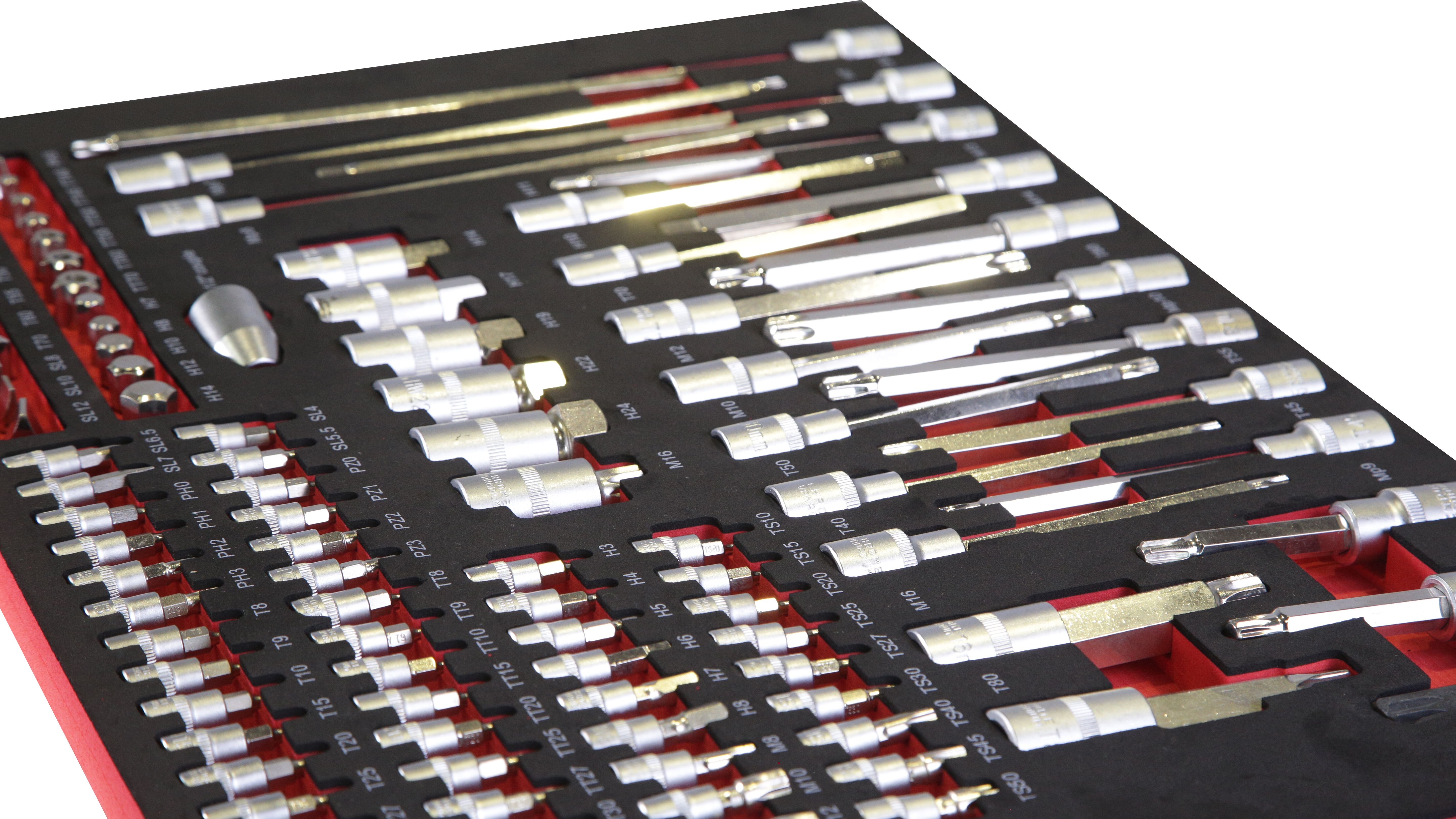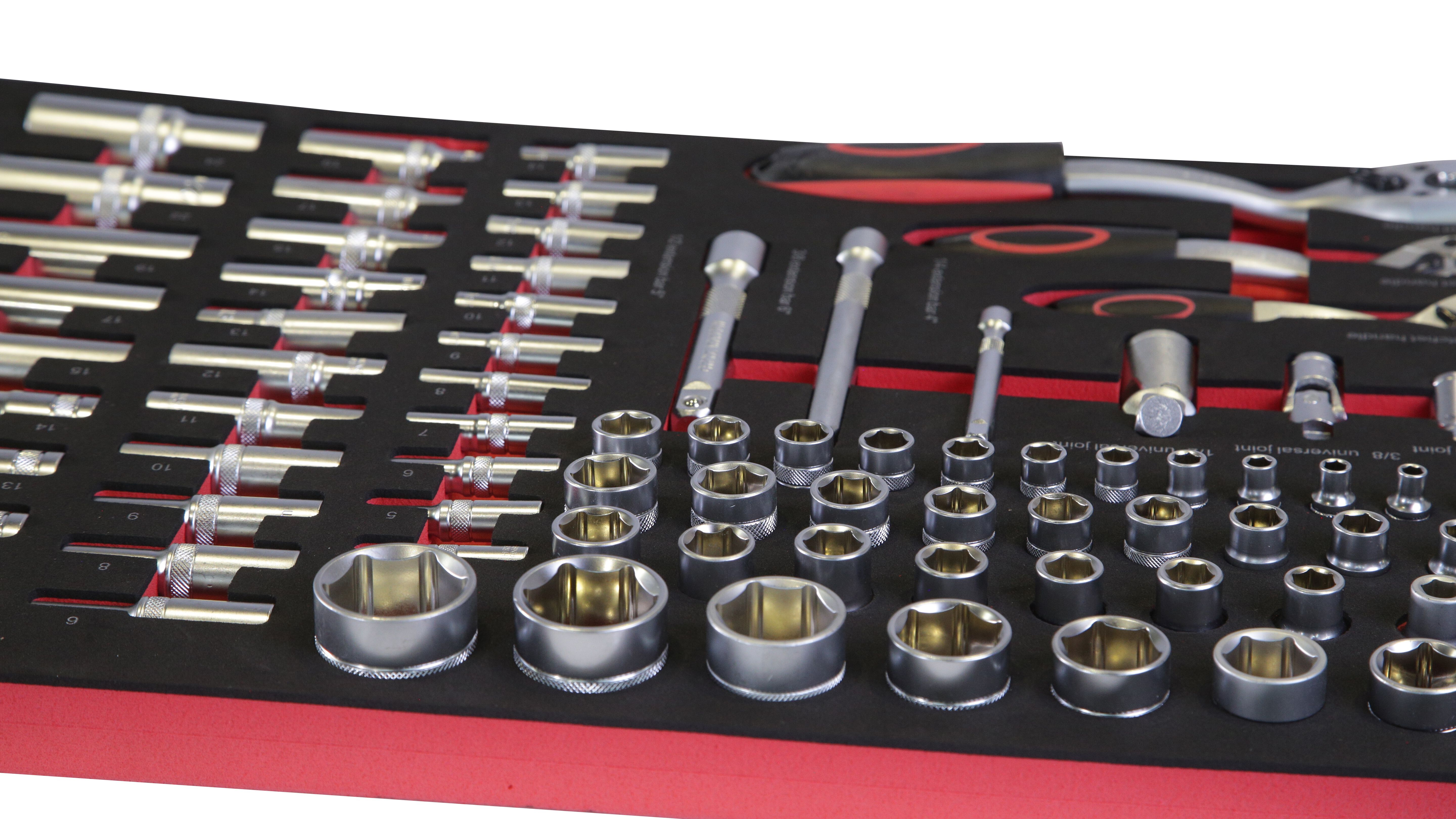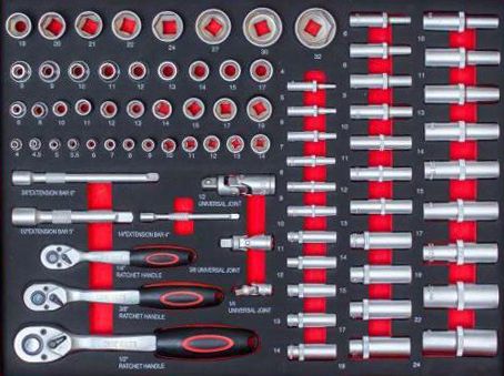 Инструментальная тележка KRW-TTG оснащена 7-ю выдвижными ящиками.В ПОДАРОК 6 ящиков укомплектованы ложементами с инструментом (250 предметов). Тележка предназначена для оборудования рабочих мест в автосервисах, мастерских и других производственных помещениях. Телескопические направляющие ящиков имеют механизм фиксации, не позволяющий самопроизвольно открыться ящику, даже если внутри находится инструмент, а также доводчиком, обеспечивающим плавное закрытие ящика. Корпус тележки изготовлен из высококачественной стали и окрашен порошковой краской. Перфорированные боковины предусматривают установку крючков. Для перемещения тележки предусмотрены обрезиненные стальные колеса Ф100 мм, одно из которых имеет стояночный тормоз.