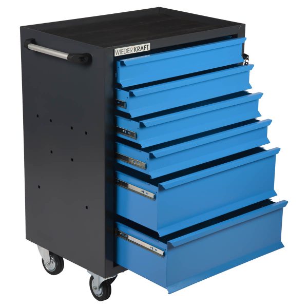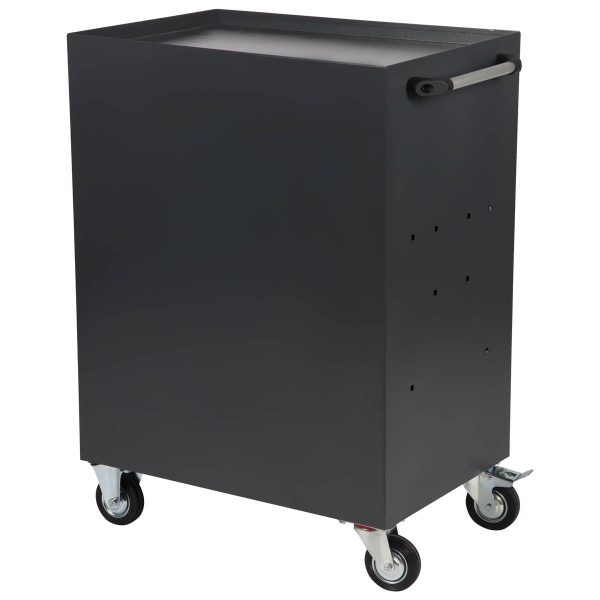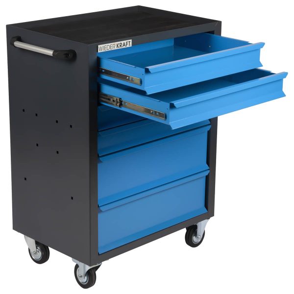 Тележки с выдвижными ящиками передвигаются с помощью удобной боковой ручки из алюминия и качественного пластика
