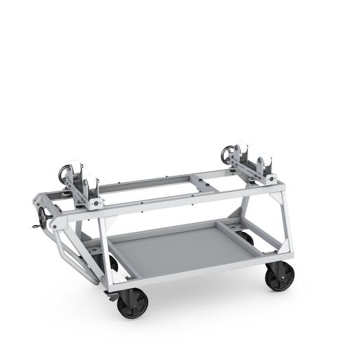 Служит для перемещения валов. Изделие комплектуется 2-мя стяжными ремнями с храповыми механизмами. Нижняя платформа оборудована неповоротными колесами и поворотными с тормозом. Сварная рама покрыта полимерной порошковой краской.