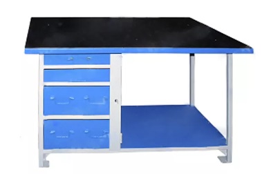 Стандартно комплектуется оцинкованной столешницей (подкладка брус — 35 мм), тумбой с 3 ящиками для инструмента, боковой стойкой с полкой, задней стенкой.