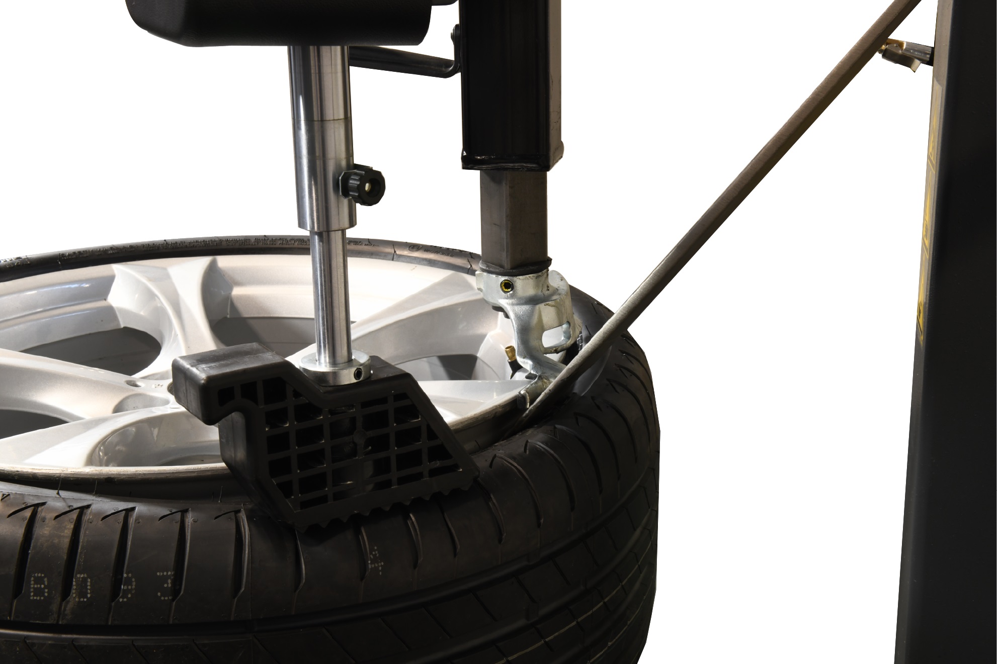 Облегчает сборку и разборку низкопрофильных шин. Устройство монтируется слева и подключается к пневмостеме станка.