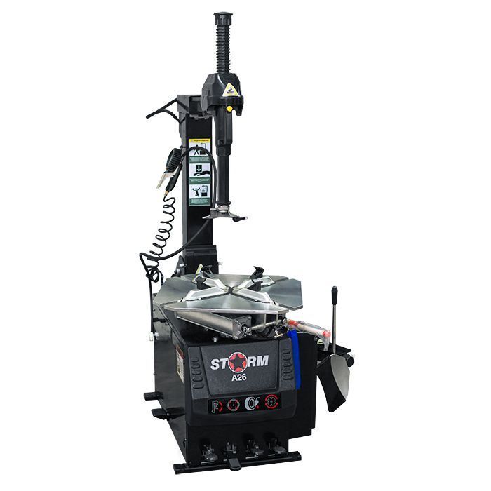 Автоматический шиномонтажный стенд с пневматической фиксацией. Предназначен для работы с дисками до 26”.