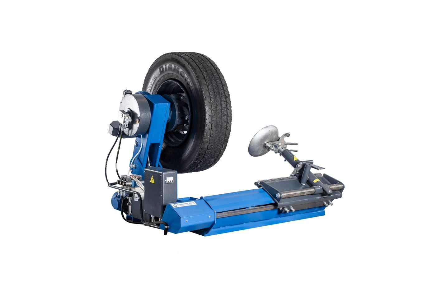 Стенд шиномонтажный для колес грузовых автомобилей. Диаметр обода от 14 до 26 дюймов, диаметр колеса - до 1640 мм., ширина колеса - до 800 мм. Стенд позволяет производить операции демонтажа и монтажа шин автобусов, грузовых авто, сельскохозяйственных и строительных машин.