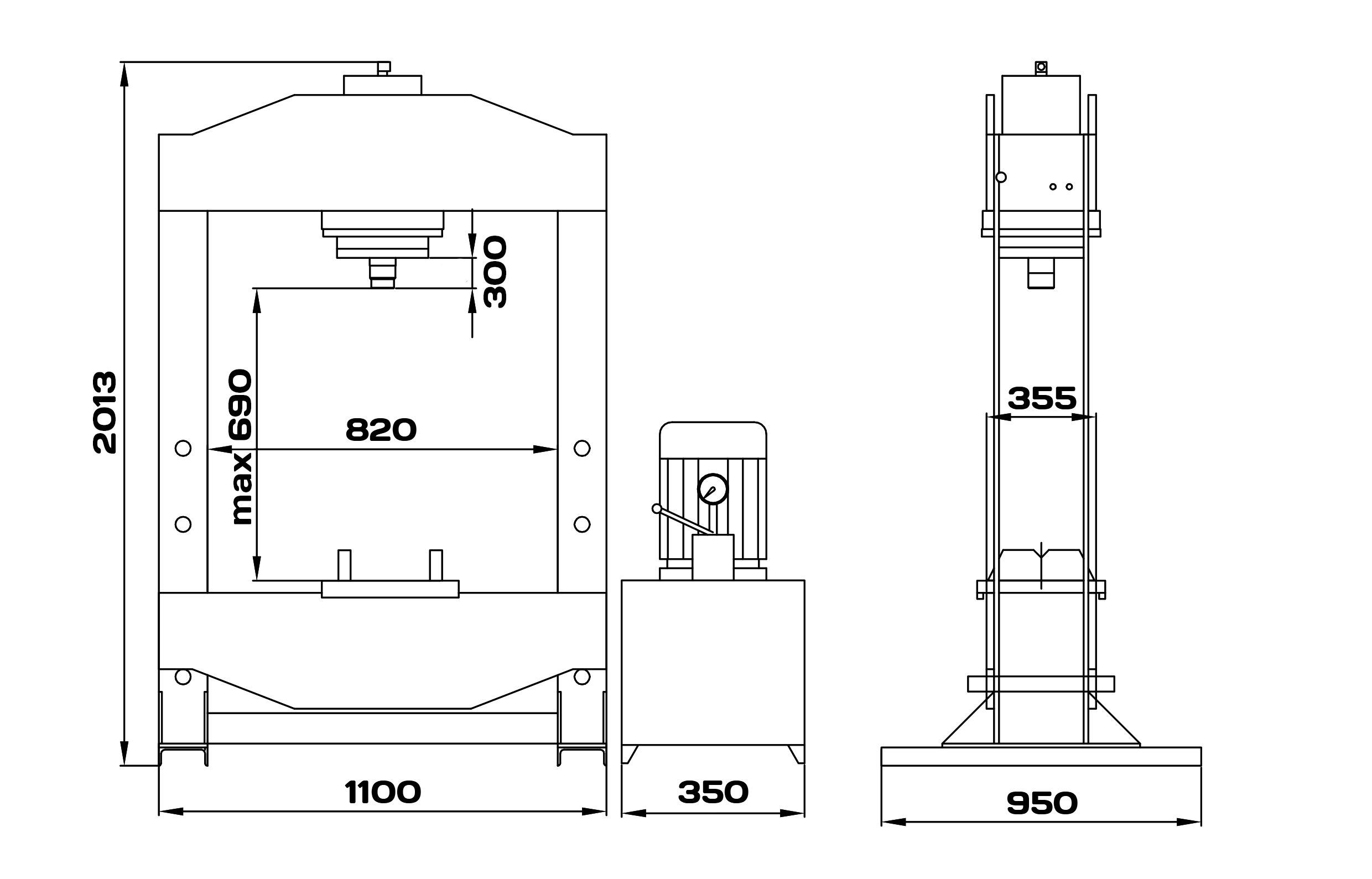 Принцип работы гидравлического пресса заключается в создании давления гидравлического масла в рабочем цилиндре при помощи насоса. Создаваемое насосом давление перемещает шток цилиндра в вертикальной плоскости, который в свою очередь давит на деталь, расположенную между штоком и рабочим столом. Усилие, с которым давит шток контролируется по манометру, установленному на гидроцилиндре.