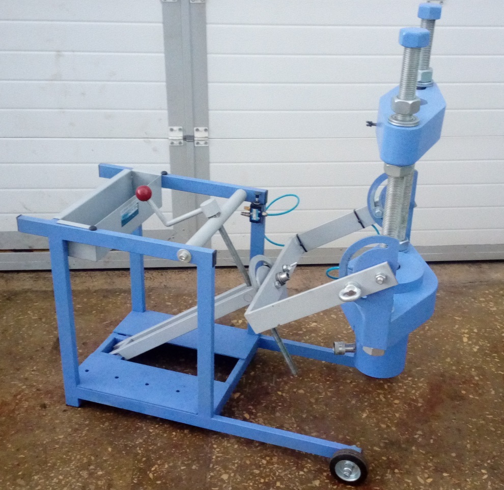 Одним из основных плюсов выпрессовщика ВШ70-200 с тележкой является возможность быстрой и безопасной работы. Шарнирно-закрепленная траверса с рабочим цилиндром позволяет поворачивать гидроцилиндр в любое требуемое положение. Использование винтовой тяги дает возможность устанавливать цилиндр под любым углом, что значительно увеличивает удобство в работе. Прорезиненные колесики диаметром 100 мм и поперечное перемещение колесиков до 10 мм обеспечивают легкость позиционирования выпрессовщика относительно шкворня.