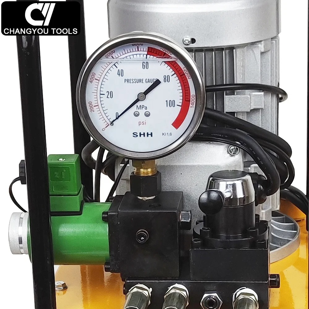 Маслостанция МГС 700-0.8П-Э-3 оснащена электромагнитным и ручным распределителем с подключенными к нему через БРС рукавами высокого давления, заполненным глицерином манометром со шкалой до 1000бар. Маслостанция работает на гидравлическом масле И-8А или масле с аналогичными характеристиками.