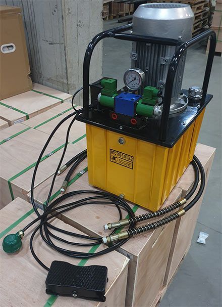 Маслостанция МГС 700-3.0П-Э-2 оснащена электромагнитным распределителем с подключенными к нему рукавами высокого давления, заполненным глицерином манометром. Маслостанция работает на всесезонном гидравлическом масле "ВМГЗ". Управление маслостанцией осуществляется двухсторонней педалью.