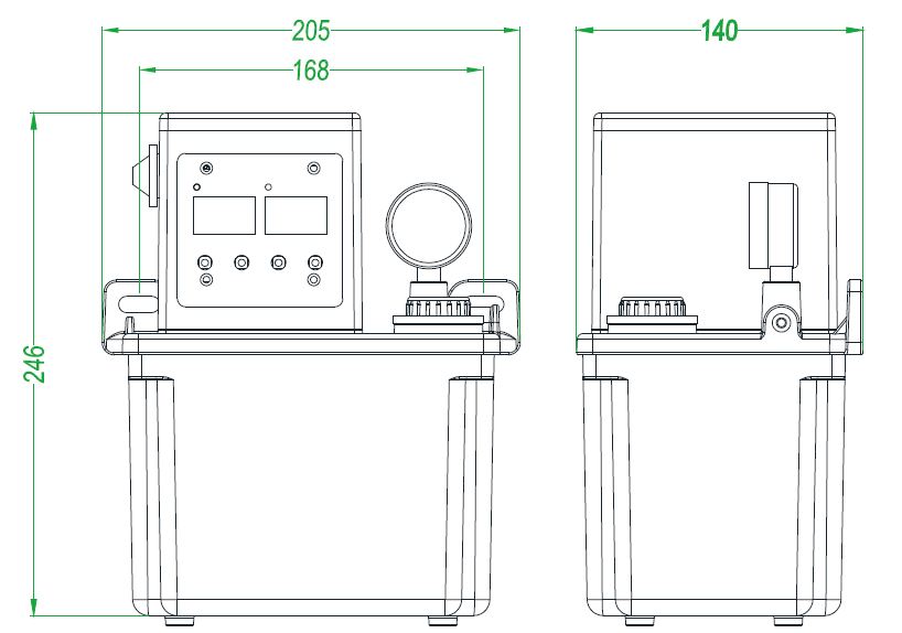 4. После включения питания контура система переходит в режим подачи масла и переходит в цикл LUB, INT. При подаче топлива горит левый зелёный индикатор LUB, а правый красный индикатор INT – при отключении системы.