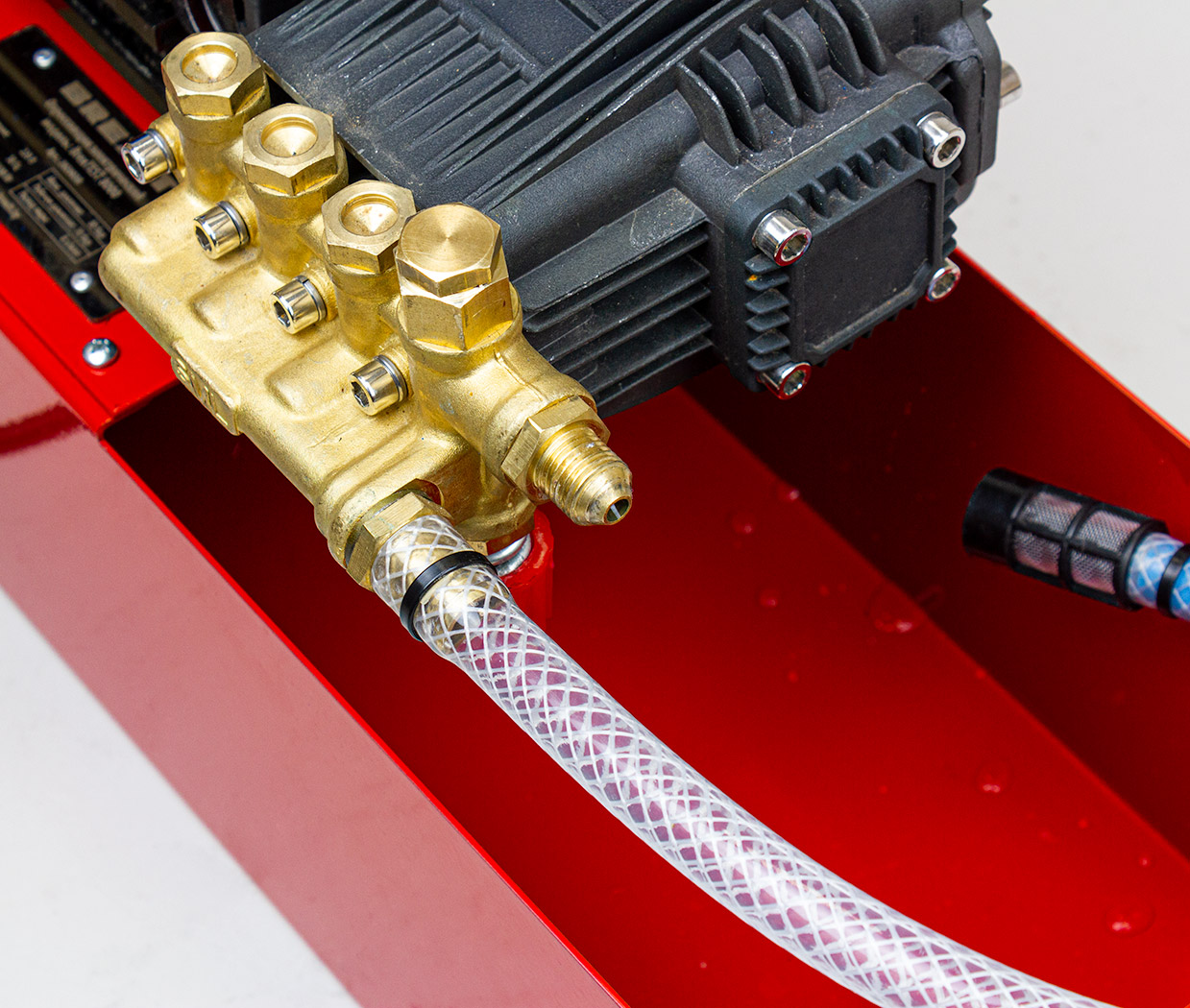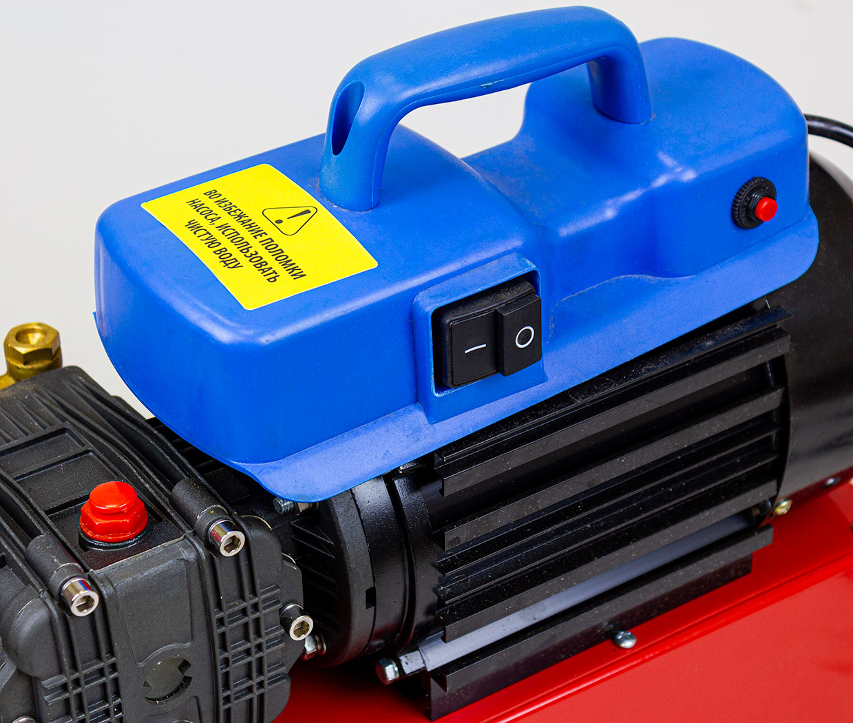 Его конструкция обеспечивает надежную работу в течение продолжительного времени, т.к. все детали его гидравлической системы изготовлены из нержавеющих материалов, а клапаны всасывания и нагнетания защищены от попадания грязи при всасывании и сливе рабочей жидкости. Постоянство давления в испытываемой системе обеспечивается двумя клапанами и вентилем с шаровыми запорами.