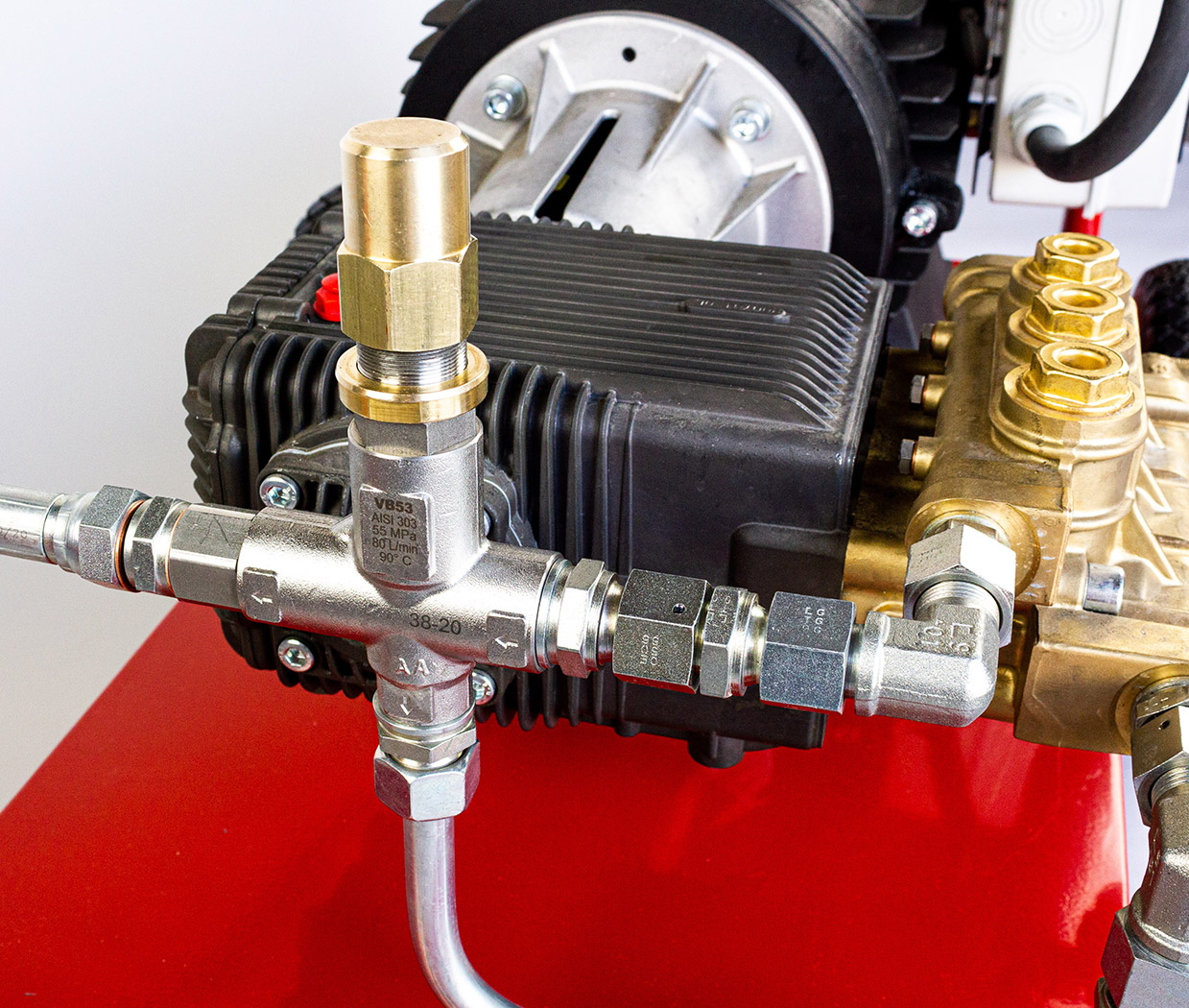 - Трехплунжерный насос высокого давления Annovi Reverberi (Италия). Головка из никелированной латуни с высокой стойкостью к механическим нагрузкам гарантирует длительный срок эксплуатации. Термоклапан для защиты от перегрева;
