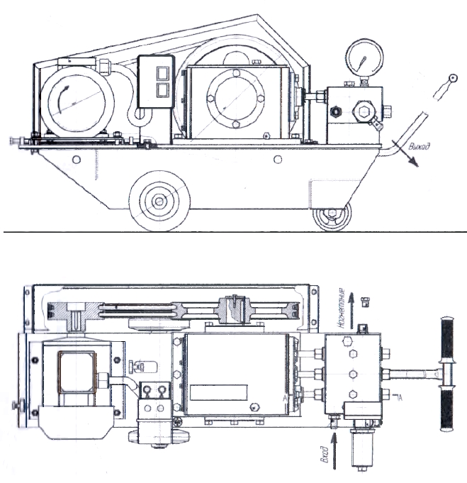 Передвижной объёмный насос, точнее, целая серия установок НП-150/600, используется после монтажа различных систем, сосудов и котлов для их опрессовки. Насосный агрегат за счёт своей мобильности может использоваться не только по прямому назначению.