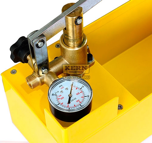 Ручной гидравлический опрессовщик KERN актуален при выполнении точных и максимально оперативных работ по опрессовке труб в отопительных комплексах и системах, при проверке резервуаров и трубопроводов в теплоснабжающих, канализационных и водопроводных системах на их герметичность, в том числе и под давлением, установок холодильного типа, обустройстве солнечных батарей и систем со сжатым воздухом, систем, заполненных маслом, в процессе изготовления резервуаров напорного типа, котло- и бойлеростроении, спинклерной разводке, разводке внутри теплообменников и т. д.