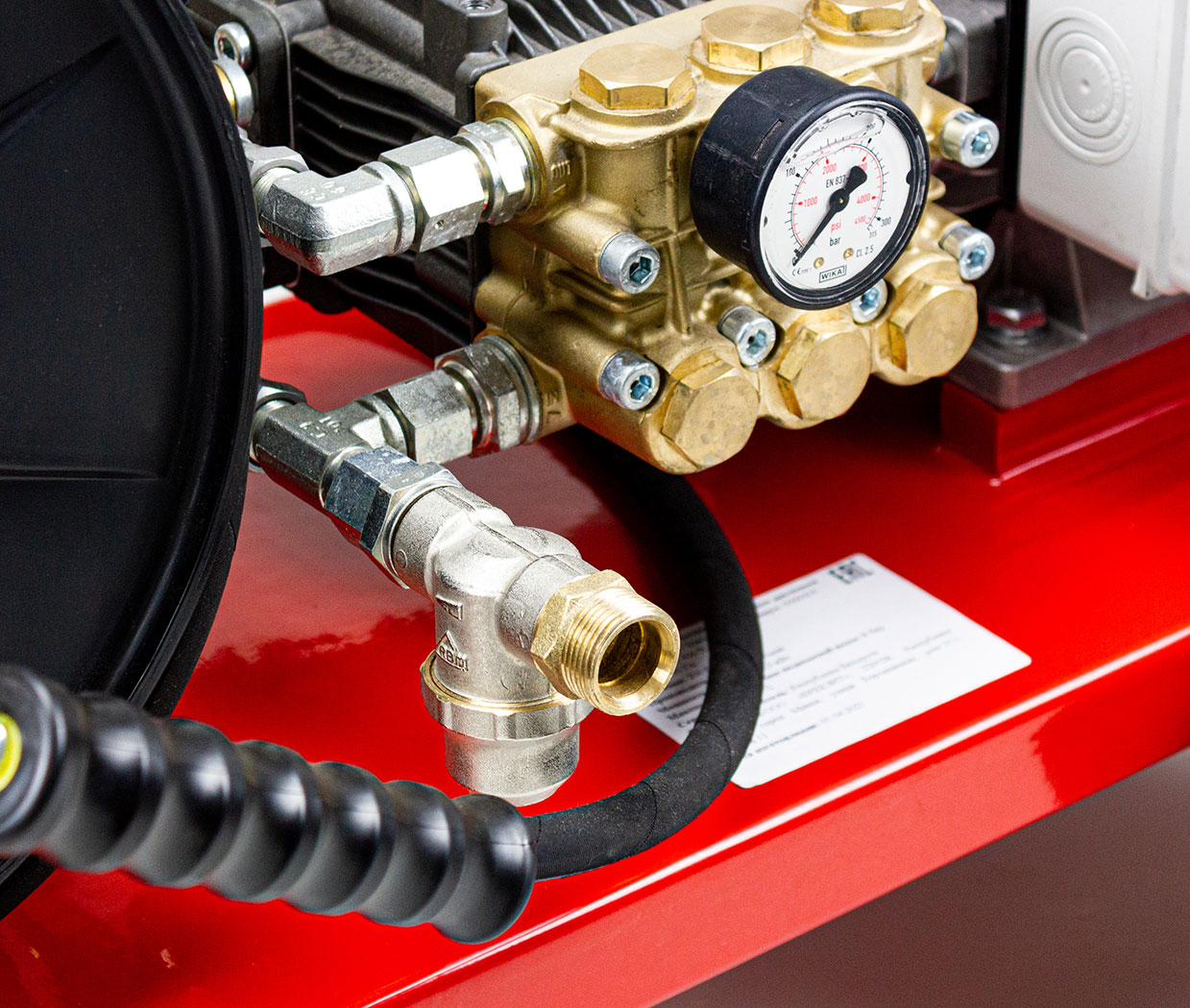 - Трехплунжерный насос высокого давления Annovi Reverberi (Италия). Головка насоса изготовлена из никелированной латуни с высокой стойкостью к механическим нагрузкам гарантирует длительный срок эксплуатации. Термоклапан, которым оснащен насос, выполняет функцию защиты от перегрева;
