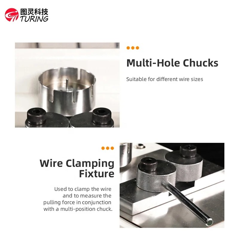 Доступны универсальные приспособления для испытания на разрыв обжимных, паяных или сварных клемм и кабельных стяжек:
