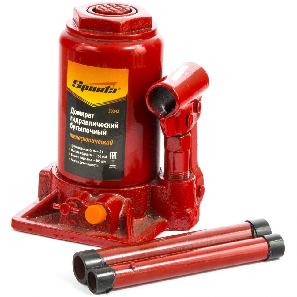 Гидравлический домкрат с телескопическим механизмом Sparta предназначен для подъема груза массой до 3 тонн.