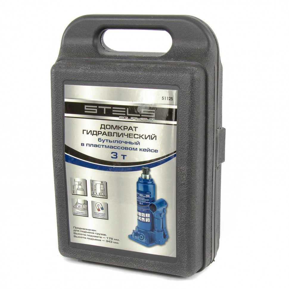 Гидравлический домкрат STELS с клапаном безопасности предназначен для подъема груза массой до 3 тонн.