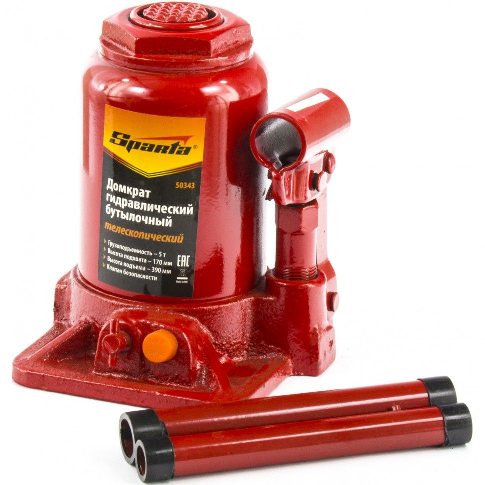 Гидравлический домкрат с телескопическим механизмом Sparta предназначен для подъема груза массой до 5 тонн.