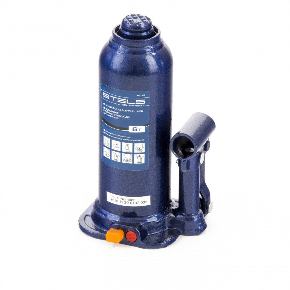 Гидравлический домкрат STELS с клапаном безопасности предназначен для подъема груза массой до 6 тонн.