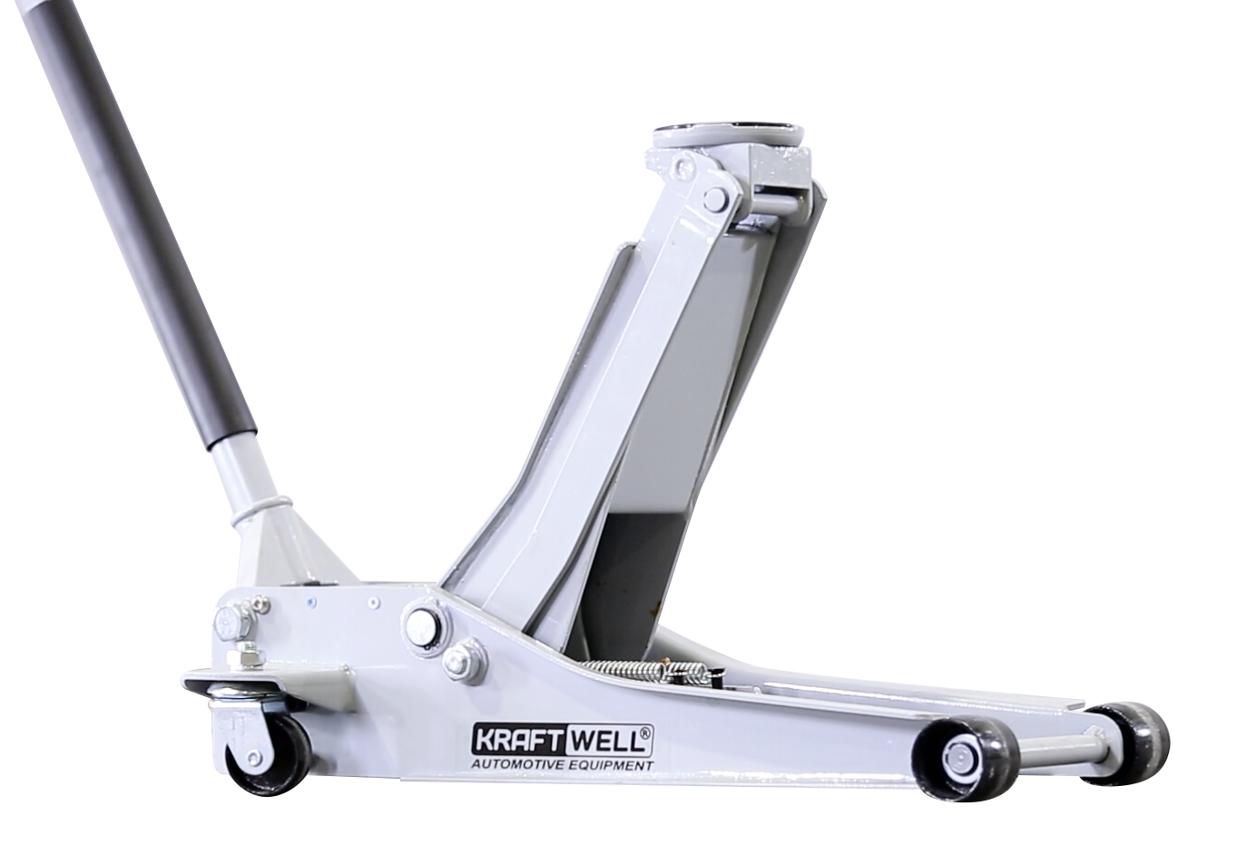 Подкатной низкопрофильный гидравлический домкрат для профессионального использования на СТО и в шиномонтажных мастерских. Широкий диапазон высоты подъема позволяет поднимать не только автомобили с низким клиренсом, но и внедорожники и легкий коммерческий транспорт. Двухпоршневой насос обеспечивает быстрый и плавный подъем, а карданный привод запорного клапана - плавное опускание автомобиля. В гидравлической схеме предусмотрен клапан защиты от перегрузки для предотвращения выхода насоса из строя, в случае приложения нагрузки, превышающей номинальную грузоподъемность. Конструкция домкрата спроектирована таким образом, чтобы обеспечить максимальную устойчивость и маневренность на любой твердой поверхности. Для защиты автомобиля от повреждений, домкрат оснащен защитной мягкой оболочкой рукоятки и резиновой накладкой на опорной площадке. Отличительной особенностью домкратовKraftWellявляется наличие ремкомплекта для насоса в стандартной комплектации.