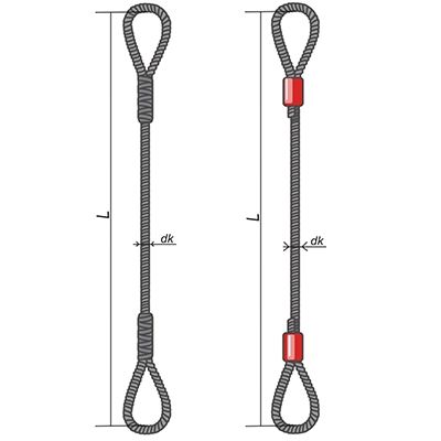 Строп канатный петлевой СКП состоит из 1 канатной ветви с петлями на обоих концах. Стропы СКП производятся по стандарту РД 10-231-98 с запасом прочности 6:1, методом опрессовки алюминиевой втулкой.