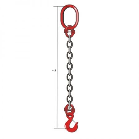 Строп цепной одноветвевой 1СЦ состоит из 1 цепной ветви с овальным звеном на 1 конце и крюком на другом. Стропы 1СЦ производятся по стандарту РД 10-231-98 с запасом прочности 4:1, из стали класса прочности 8.