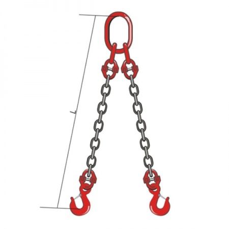 Строп цепной двухветвевой 2СЦ состоит из 2-х цепных ветвей с крюками, связанных овальным звеном. Стропы 2СЦ производятся по стандарту РД 10-231-98 с запасом прочности 4:1, из стали класса прочности 8.