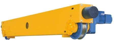 Балка концевая опорная - является опорой для моста крана и выполняет функцию перемещения мостового крана, по направляющему крановому пути. Опорные концевые балки оснащены парой одно или двухребордных колес. В стандартном исполнении ходовых тележек крана, одно колесо холостое, второе приводное, в специальном или тяжелом исполнении, оба колеса приводные. Для кранов двухбалочного опорного типа концевые балки выполняются в более массивной и сложной конструкции т.к. двухбалочные краны рассчитаны на более высокие нагрузки. Существует несколько типов мостовых кранов опорного типа, поэтому и крепления для моста крана бывают боковые, либо вертикальные сверху. Эти элементы очень важно учитывать при заказе концевых балок опорного типа в отдельности. При необходимости концевые балки могут комплектоваться тормозом на передвижение, механизмом плавного пуска/остановки и другими дополнительными опциями. Стандартные параметры концевых балок опорного мостового крана: