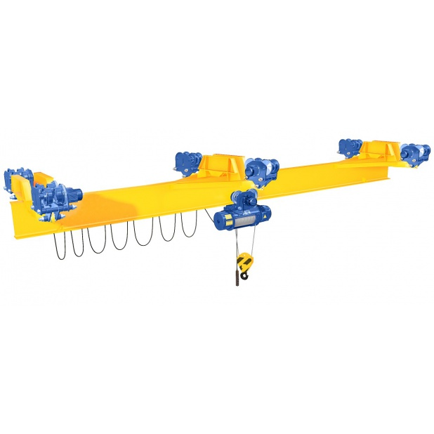 Кран мостовой подвесной (кран-балка) двухпролетный предназначен для осуществления операций по подъему и перемещению груза по монорельсовому пути двутаврового профиля в складских, промышленных помещениях, цехах, на открытом пространстве и под навесом при температуре внешней среды от -40°С до +40°С. В районах холодного климата предусмотрено исполнение оборудования категории УХЛ с возможностью эксплуатации при температуре внешней среды от -60°С до +40°С. Кран мостовой подвесной (кран-балка) двухпролетный состоит из главной (несущей) балки, которая соединена с тремя концевыми ходовыми тележками, образовывая мост. В отличие от опорных однобалочных, мостовые подвесные краны (кран-балки) за счет наличия консолей при той же длине пролета позволяют обслуживать большую площадь. Управление краном осуществляется с кнопочного пульта, подключенного по средствам гибкого кабеля к электрическому шкафу или по радиоканалу. Кран мостовой подвесной (кран-балка) двухпролетный транспортирует всевозможные грузы весом в пределах номинальной грузоподъемности, при этом стоит отметить, что стандартное исполнение исключает возможность перемещения ядовитых веществ, кислот и раскаленного металла. Для работы в помещениях с повышенными требованиями пожаро- взрывобезопасности рекомендуется эксплуатировать оборудования соответствующего исполнения в зависимости от зоны и класса опасной среды. В случае необходимости наша фирма имеет возможность осуществить поставку мостового электрического крана (электрической кран-балки) нестандартного исполнения: взрывобезопасное (взрывозащищенное), пожаробезопасное (пожарозащищенное), низкотемпературное УХЛ (температура эксплуатации от -60°С), для работы в химически агрессивной среде с защитой С4 (по ISO 12944). По требованию заказчика возможна комплектация мостовых кранов любыми типами ручных или электрических талей в штатном и нестандартном исполнении: взрывобезопасное (взрывозащищенное), пожаробезопасное (пожарозащищенное), низкотемпературное УХЛ (температура эксплуатации от -60°С), для работы в химически агрессивной среде с защитой С4 (по ISO 12944), с уменьшенной строительной высотой, в крановом исполнении и с радиоуправлением. Для облегчения работы с узлами крана в процессе эксплуатации и продления срока службы оборудования рекомендуем воспользоваться возможностью доукомплектовать изделие опциями: пульт управления по радиоканалу (радиоуправление) – позволяет управлять работой крана, находясь на безопасном расстоянии от погрузочно-разгрузочной зоны; концевые выключатели на передвижение крана вдоль путей – обязателен к применению на кранах со скоростью перемещения выше 20м/мин; световая/звуковая сигнализация на передвижение крана – выступает дополнительным устройством для обеспечения заданного уровня безопасной работы на объекте; ограничитель грузоподъемности крана – позволяет ограничить максимальную грузоподъемность мостового крана, рекомендован при использовании крана и электротали с разными номиналами; устройство защиты от падения груза при обрыве любой из 3 фаз питания; частотный преобразователь на передвижение крана – позволяет настроить скорость передвижения мостового крана в определенном диапазоне; система охлаждения двигателей/система подогрева ящика управления краном – устан