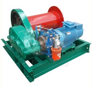 Лебедка электрическая JM-2,0 состоит из двигателя, барабана, редуктора, колодочного тормоза, переключателя движения и рамы. Вал двигателя, обеспечивающего подъем и спуск, соединен с валом редуктора, второй вал которого непосредственно вращает с барабан. Блокируется вращение колодочным тормозом. Управление подъемом и спуском осуществляется с помощью переключателя.
