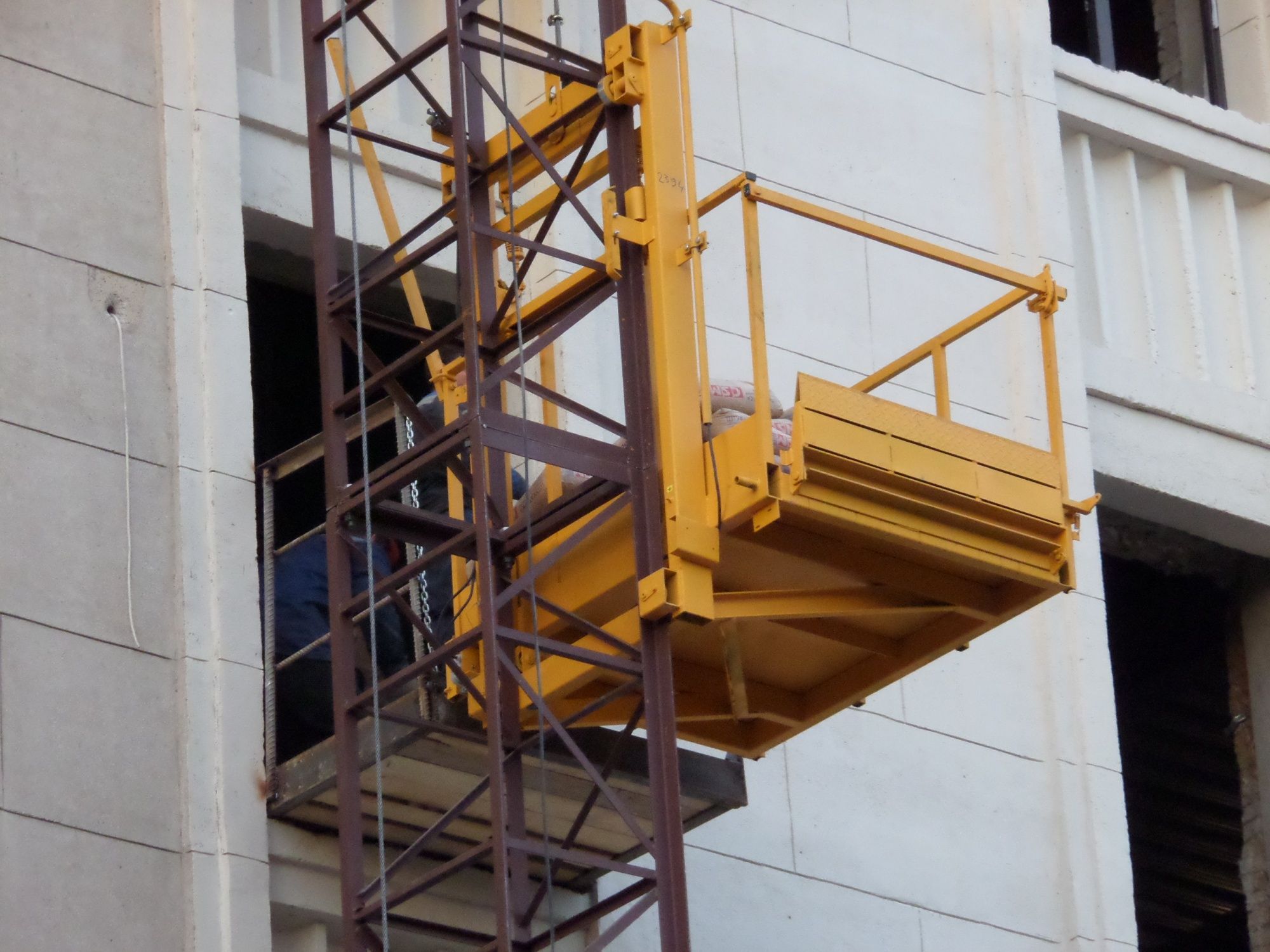 Одномачтовые строительные подъемники грузоподъемностью 500/750 килограмм широко применяются на различных промышленных объектах для подъема, опускания на перекрытия стройматериалов при выполнении отделочных работ или ремонта внутреннего помещения, для проведения монтажных работ вдоль фасада здания. Подъемник представляет собой мачту, которая собирается из отдельных секций длиной 2 метра, что позволяет выдвигать ее на высоту до 100 метров. Груз поднимают при помощи грузовой каретки, а затем подается в проем на выдвижной платформе. Для обеспечения безопасности мачтового подъемника в нем устанавливают ограничитель грузоподъемности, ставят защитные борта и монтируют автоматический тормоз. В случае обрыва троса вследствие аварийной ситуации в мачтовом подъемнике предусмотрены ловители. Наличие и тип ограждения, расположение грузоподъемных механизмов, количество промежуточных остановок и другие дополнительные опции согласовываются при оформлении заказа. Стандартные параметры работы одномачтового грузового подъемника: