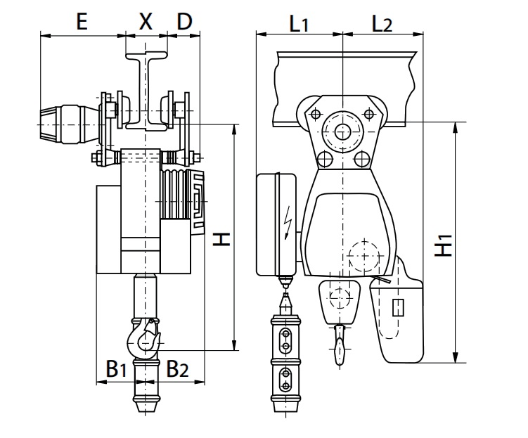 Передвижная электрическая цепная таль B091M болгарского производства грузоподъемностью 125 кг оснащена кареткой передвижения с электроприводом. Таль предназначена для подъема, удержания и опускания различных грузов а также для горизонтального перемещения грузов вдоль монорельсового пути двутаврового профиля в режиме работы 1Аm.