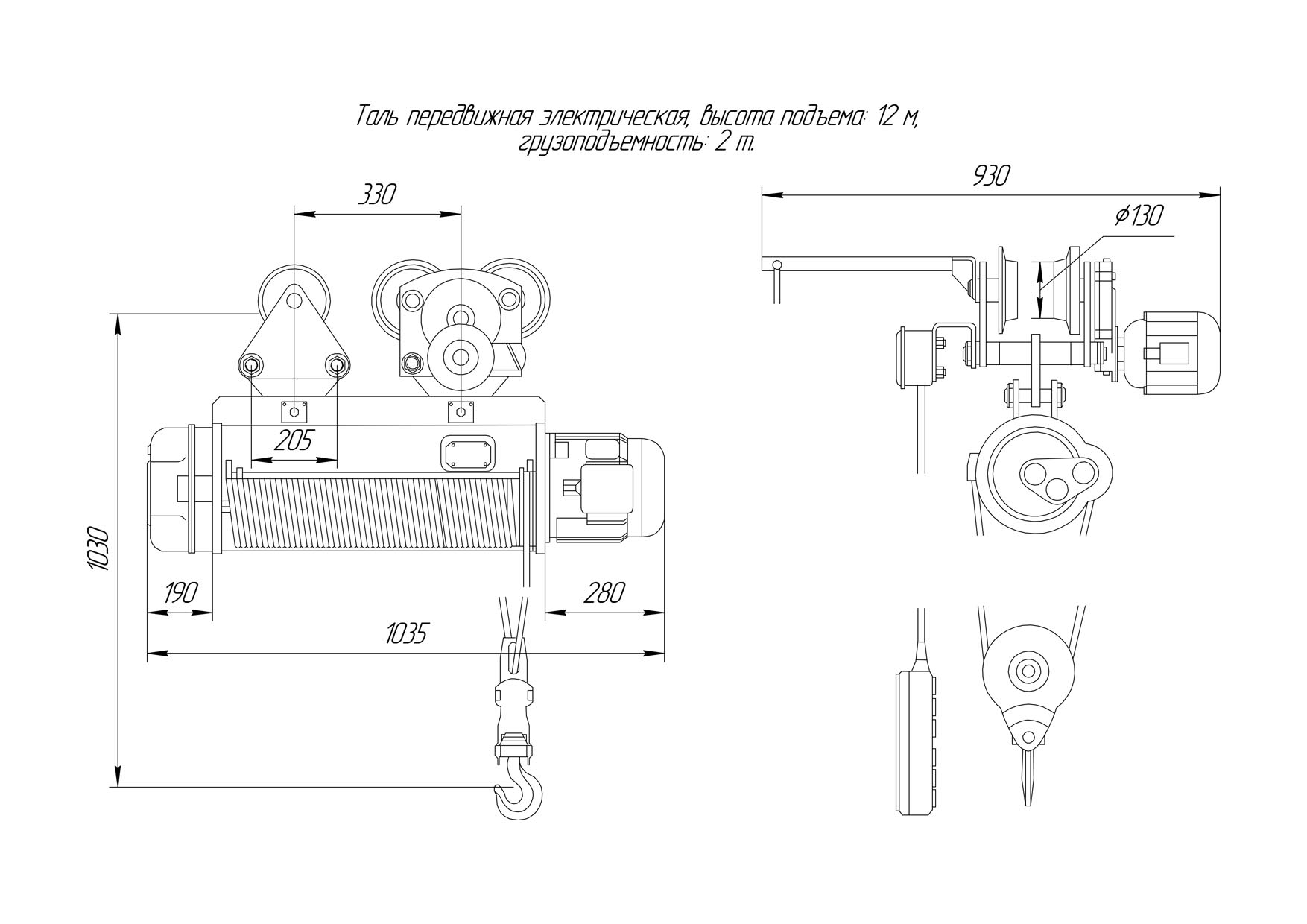 Передвижная электрическая канатная таль ТЭ 200 грузоподъемностью 2000кг оснащена кареткой передвижения с электроприводом. Таль предназначена для подъема, удержания и опускания различных грузов а также для горизонтального перемещения грузов вдоль монорельсового пути двутаврового профиля.
