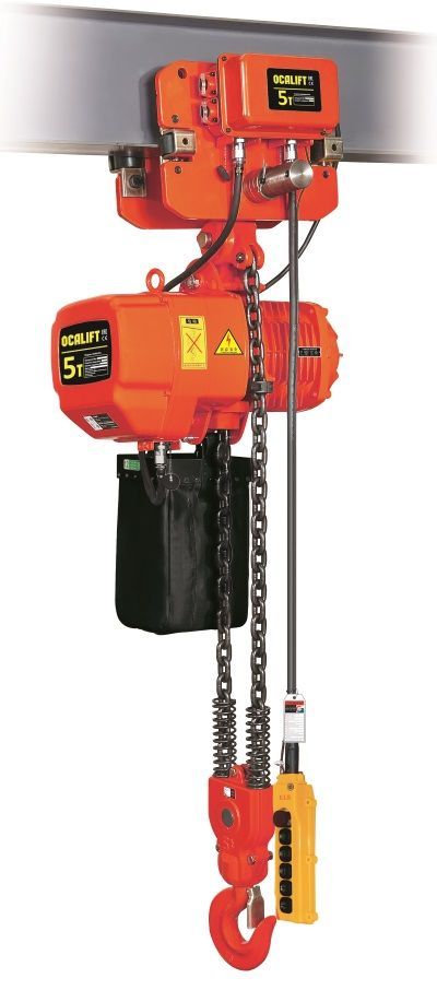 Таль электрическая цепная передвижная OCA 5т/6м (OCA0502ST6m) . Грузоподъёмность тали 5000 кг, высота подъёма 6 метров , питание 380 вольт. Таль предназначена для подъёма и перемещения грузов на производстве, для ежедневного интенсивного использования.