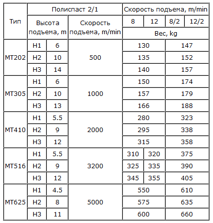 Передвижная электрическая канатная таль серии МТ выпускается с 2-мя скоростями подъема 8 или 12 м/мин. Тали серии МТ - модернизированная версия талей серии Т, отличается от них уменьшенными габаритными размерами и весом, сохряняя при этом надежность талей серии Т.