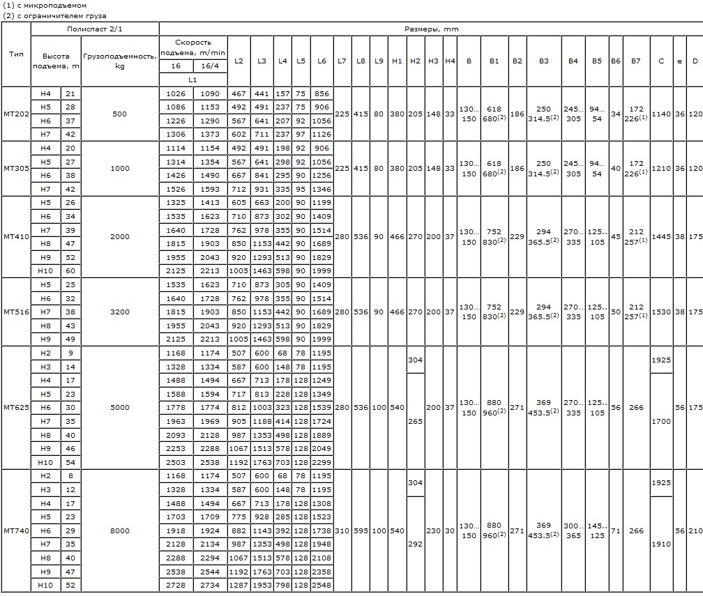 Передвижная электрическая канатная таль серии МТ выпускается с 3-мя скоростями подъема 8, 12 или 16 м/мин. Тали серии МТ - модернизированная версия талей серии Т, отличается от них уменьшенными габаритными размерами и весом, сохряняя при этом надежность талей серии Т.