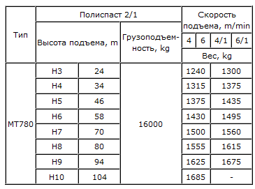 Передвижная электрическая канатная таль серии МТ 780 выпускается с 2-мя скоростями подъема 4 или 6 м/мин. Тали серии МТ - модернизированная версия талей серии Т, отличается от них уменьшенными габаритными размерами и весом, сохряняя при этом надежность талей серии Т.