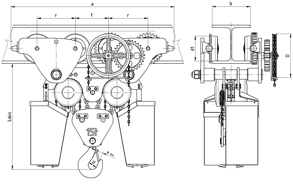 ** передвижные тали грузоподъемностью 15 / 20 т должны обслуживаться двумя операторами!