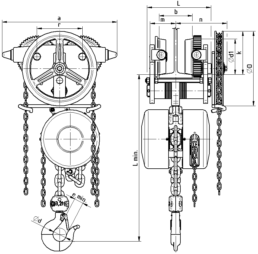 Таль Brano Z220 – передвижная цепная ручная шестеренная таль, оснащенная кареткой перемещения с ручным управлением для перемещения по горизонтальным крановым путям. Отличия от устаревшей серии Z210 – ходовая часть тали оснащена предохранительными бамперами. Таль Z220 0,5 – 10 т обычно производится с базовой высотой подъема 3 м. Возможность выбора высоты подъема от 3 м до 12 м.