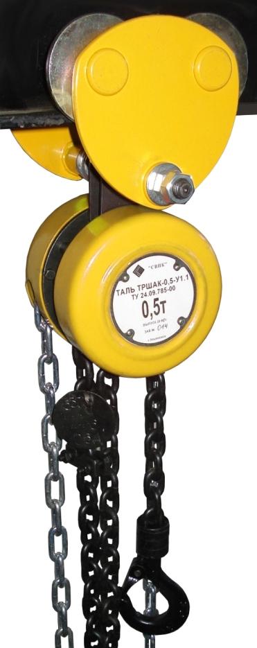 Таль ручная передвижная цепная ТРШАК-0,5 предназначена для подъёма, удержания в поднятом положении и опускания груза массой до 0,5 т, а также для перемещения груза по подвесному пути двутаврового профиля при различных работах в режиме не выше группы режима 1М по ГОСТ 25835.