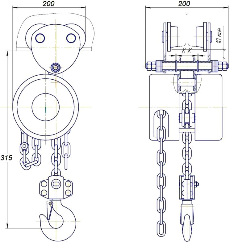 Таль ТРШАК-0,5 не имеет привода механизма передвижения. Перемещение тали по подвесному пути осуществляется приложением усилия оператора тали к грузовой цепи или к грузу.
