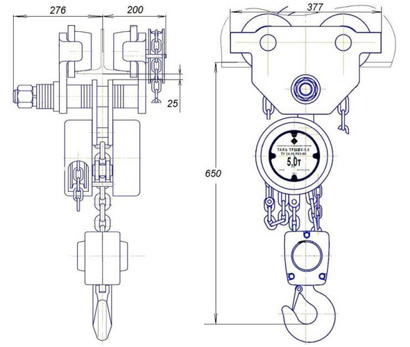 Таль ручная шестеренная цепная ТРШБК-5/9