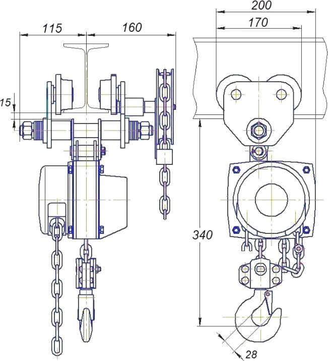 Таль ручная цепная шестеренная ТРШБМ-1,0 предназначена для подъёма, удержания в поднятом положении и опускания груза массой до 1000 кг, а также для перемещения груза по подвесному пути (двутавровый профиль) при различных работах в режиме не выше группы режима 1М по ГОСТ 25835.