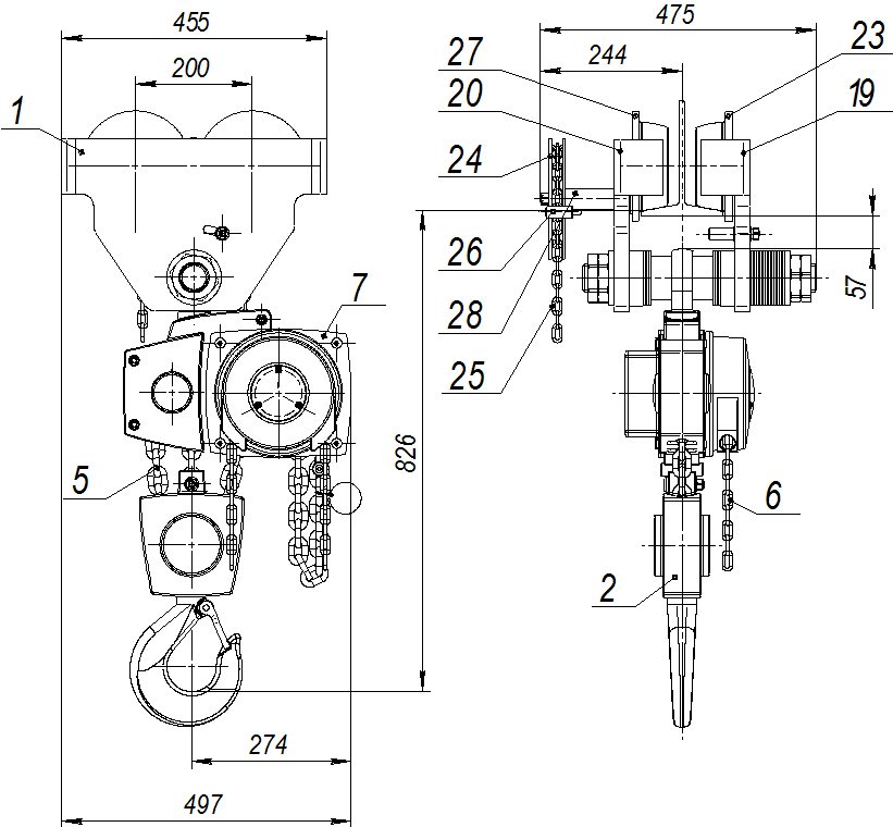 * Вес тали указан без цепей.
