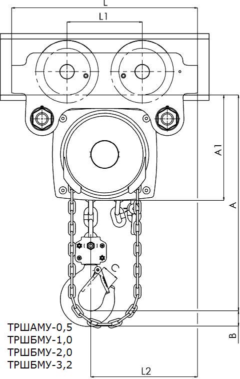Таль ТРШАМУ оснащена кареткой передвижения без привода, тали ТРШБМУ оснащаются кареткой с ручным приводным механизмом.