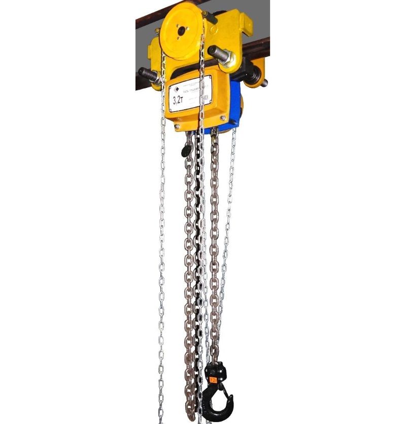 Передвижные тали ручные с уменьшенной строительной высотой типа ТРШАМУ, ТРШБМУ - цепные шестеренные тали с поворотным кожухом тяговой цепи. Предназначены для подъёма, удержания в поднятом положении и опускания груза, а также для перемещения груза по подвесному пути двутаврового профиля в режиме не выше группы режима 1М по ГОСТ 25835